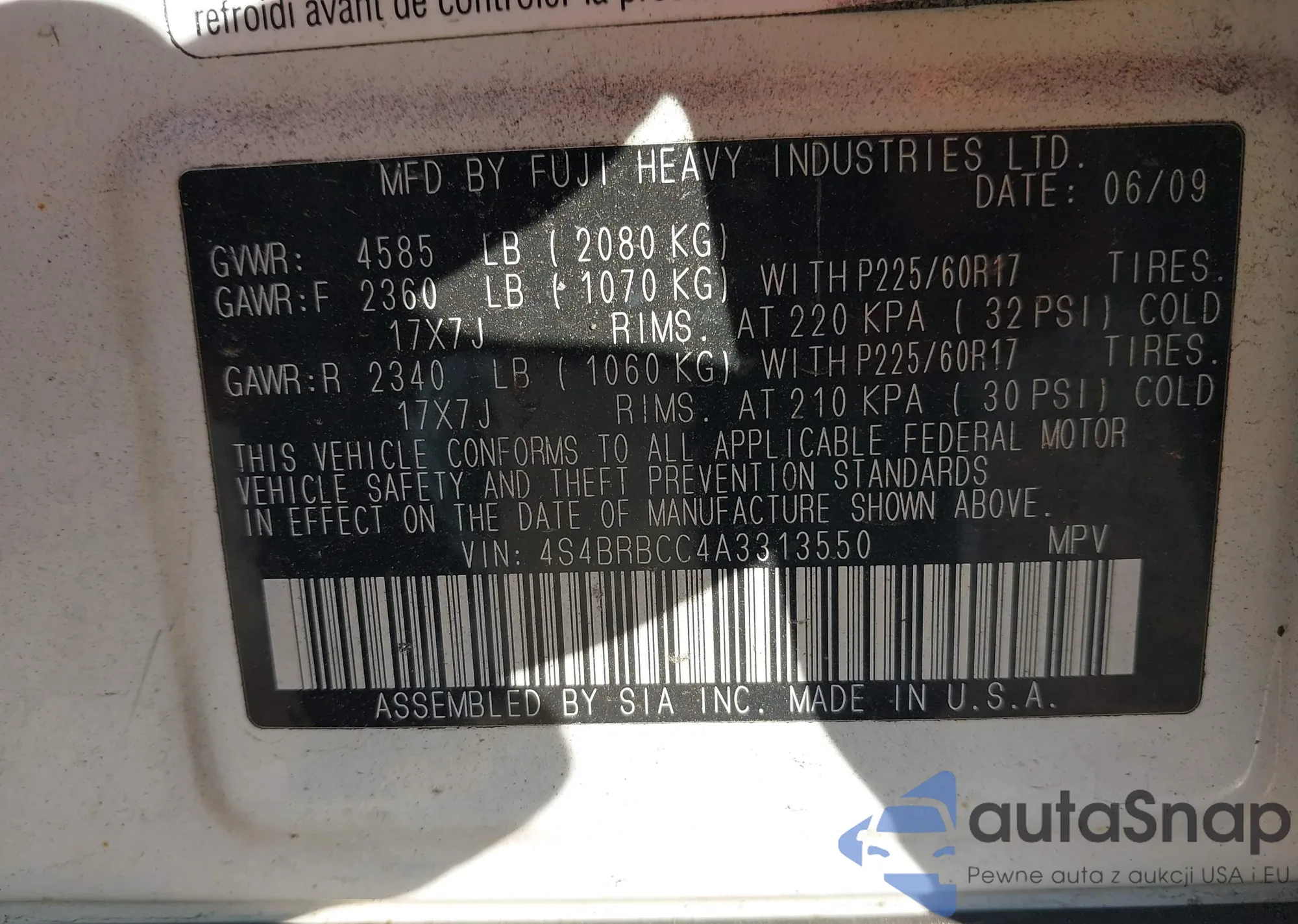 • VIN 4S4BRBCC4A3313550