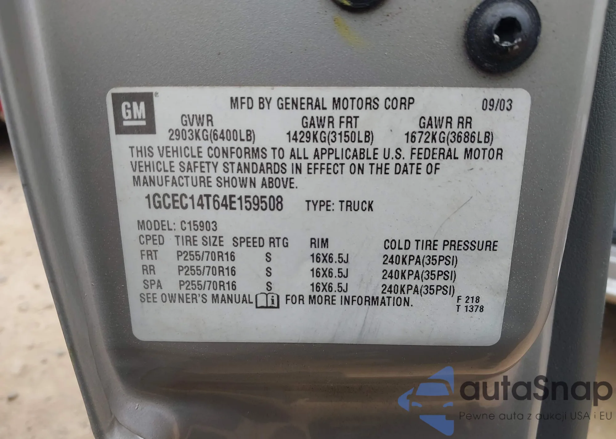 LOT: 41913862 VIN: 1GCEC14T64E159508