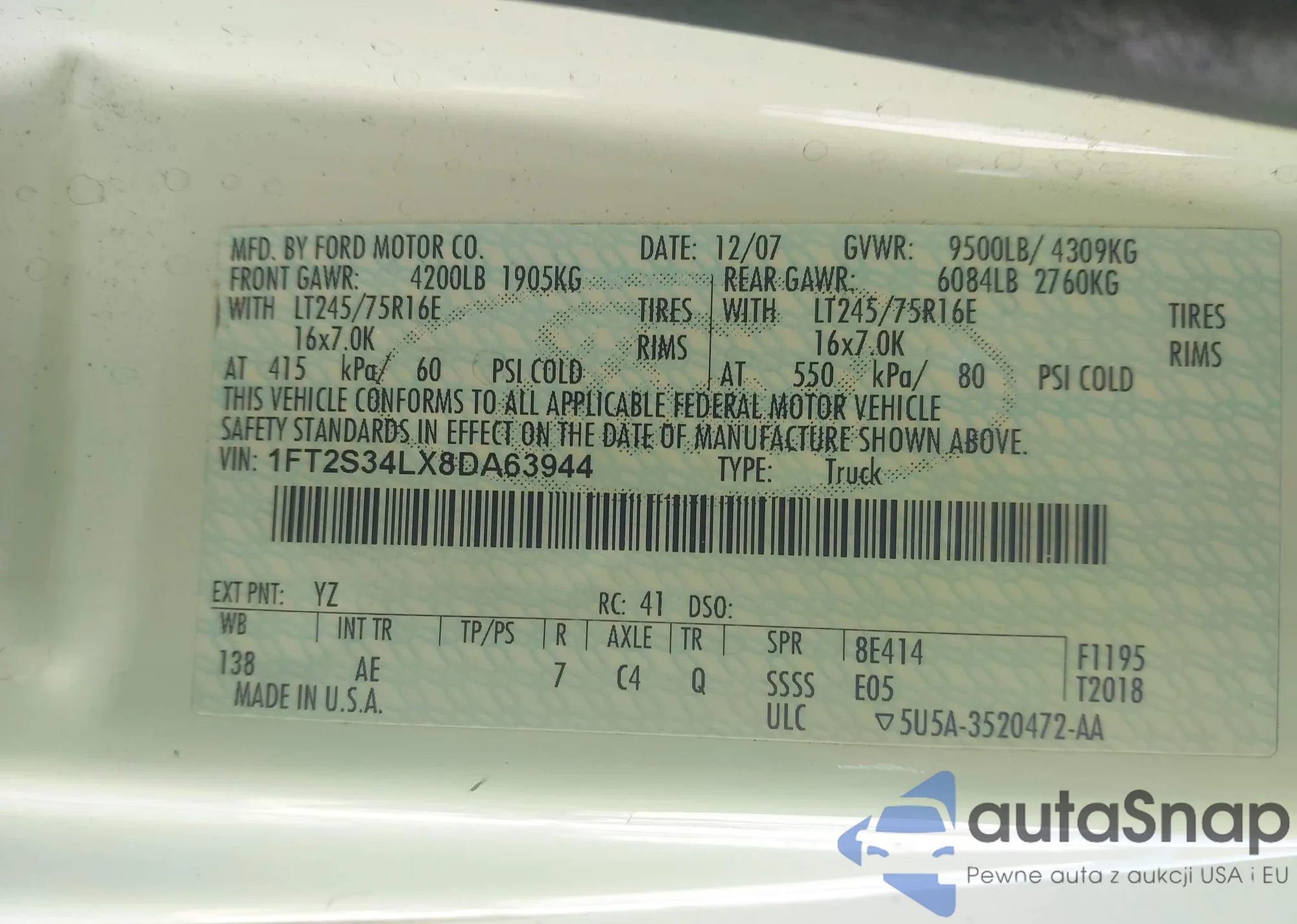• VIN 1FT2S34LX8DA63944