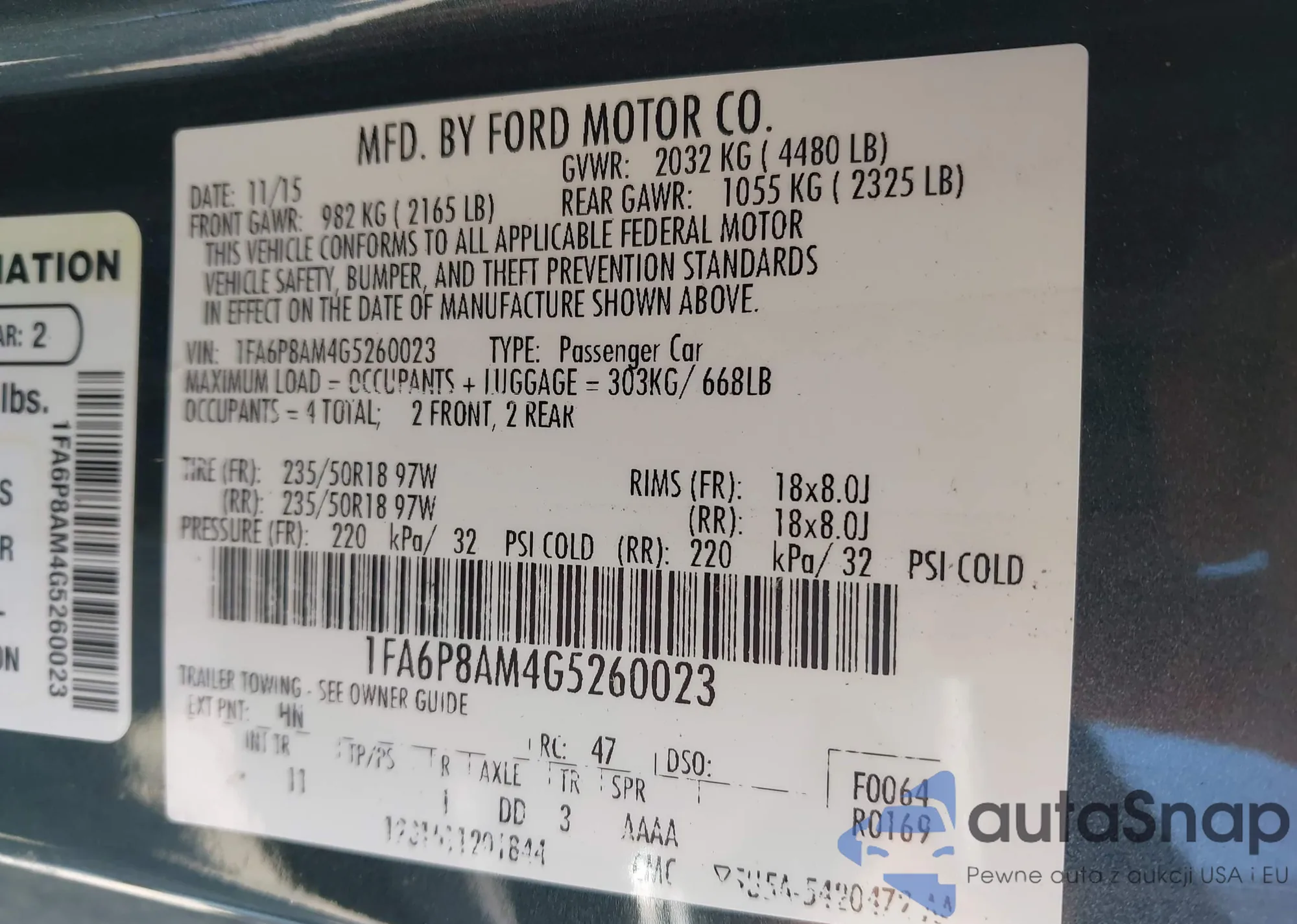 • VIN 1FA6P8AM4G5260023