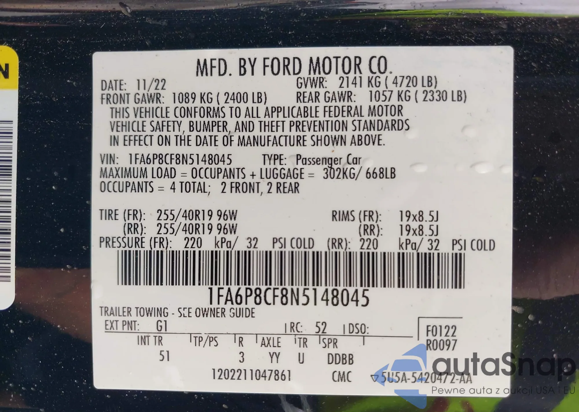 • VIN 1FA6P8CF8N5148045