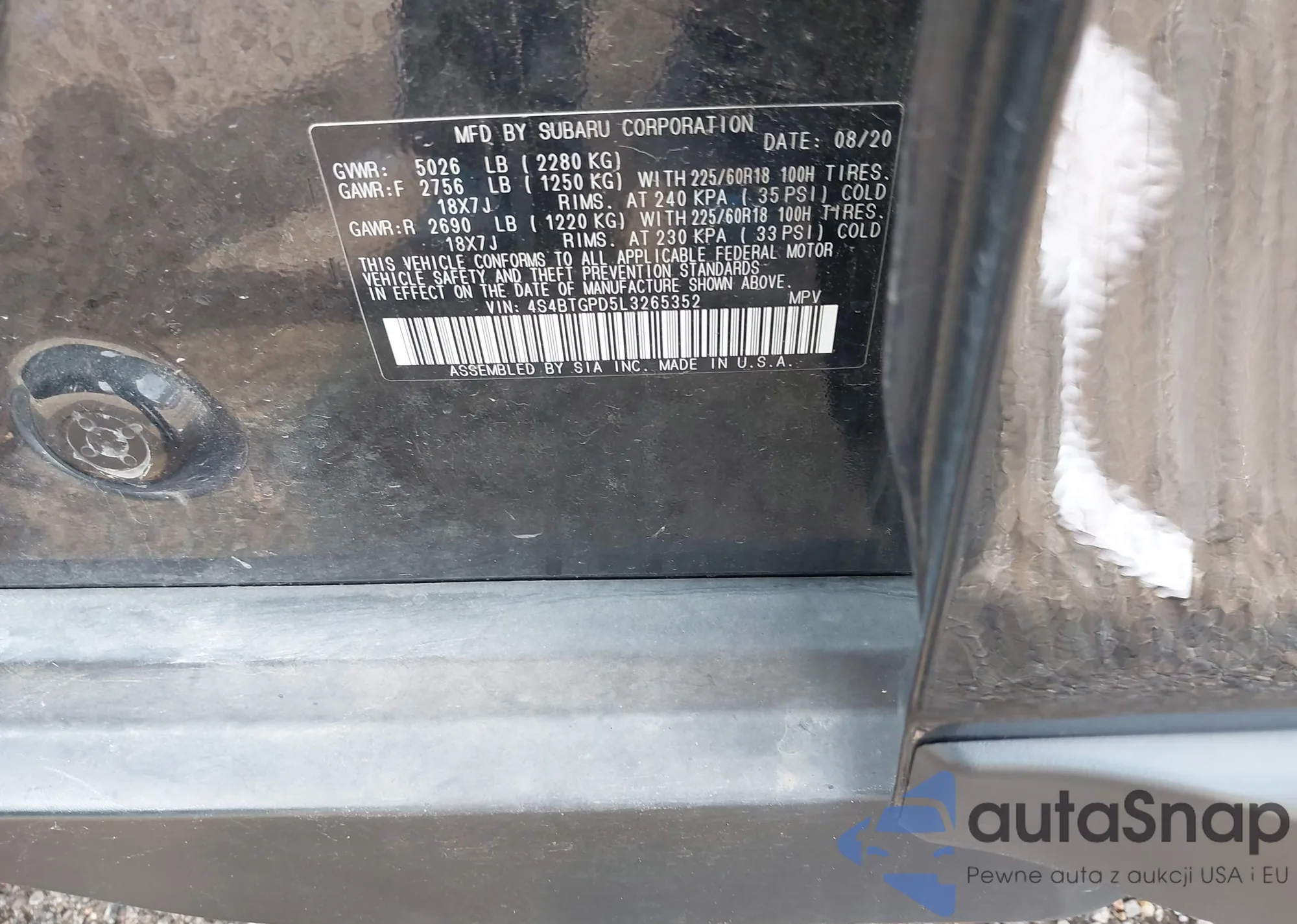 LOT: 42440981 VIN: 4S4BTGPD5L3265352