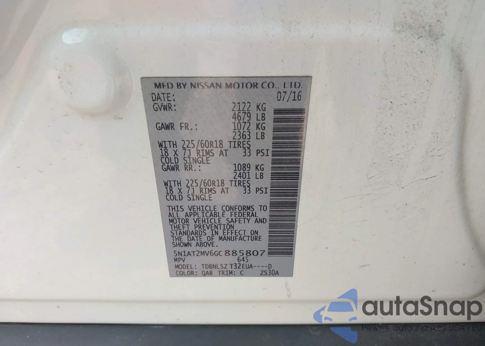 • VIN 5N1AT2MV6GC885807