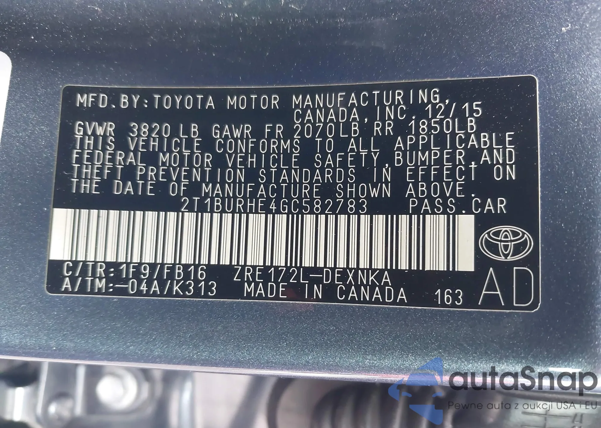 • VIN 2T1BURHE4GC582783