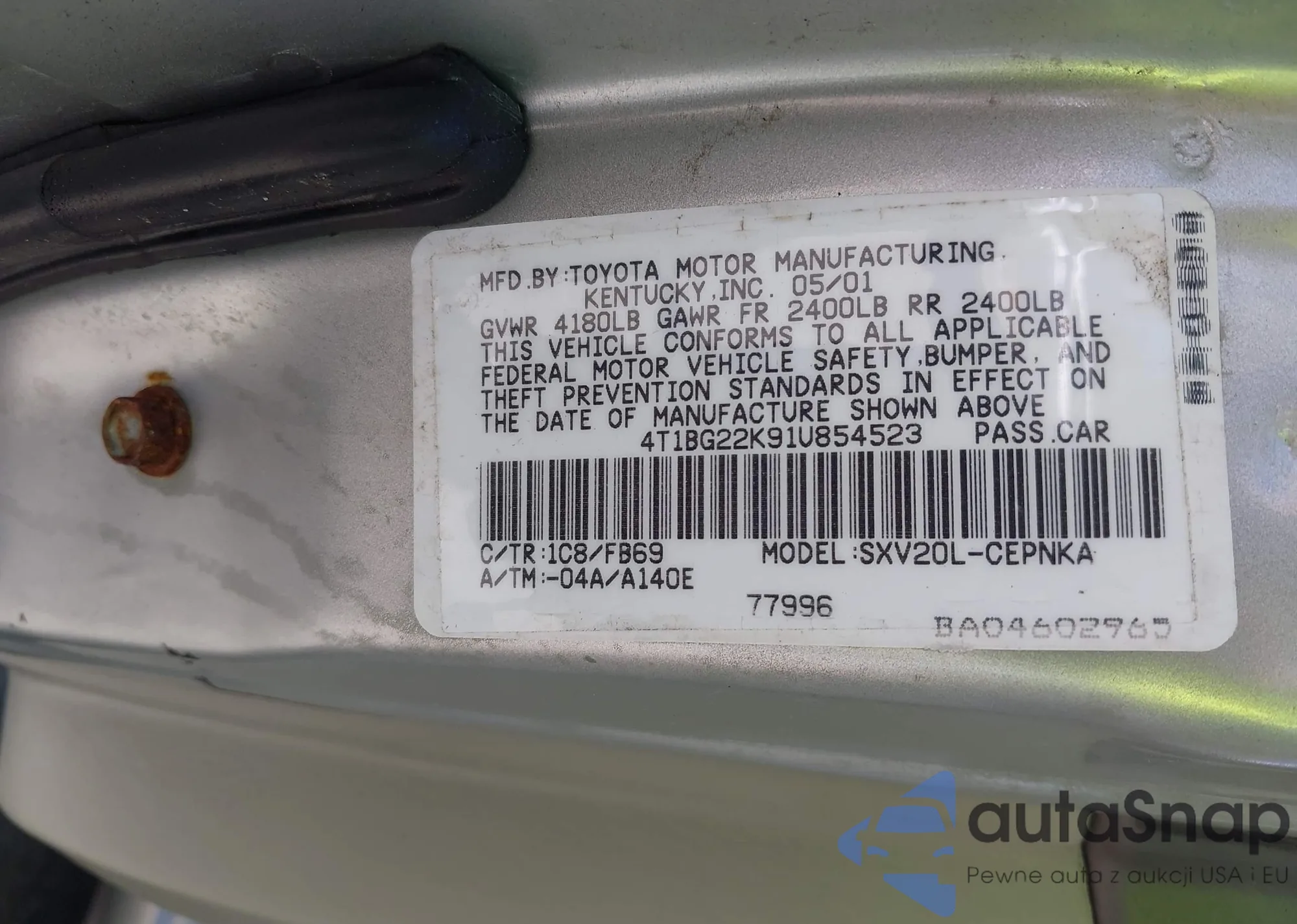 LOT: 42162105 VIN: 4T1BG22K91U854523