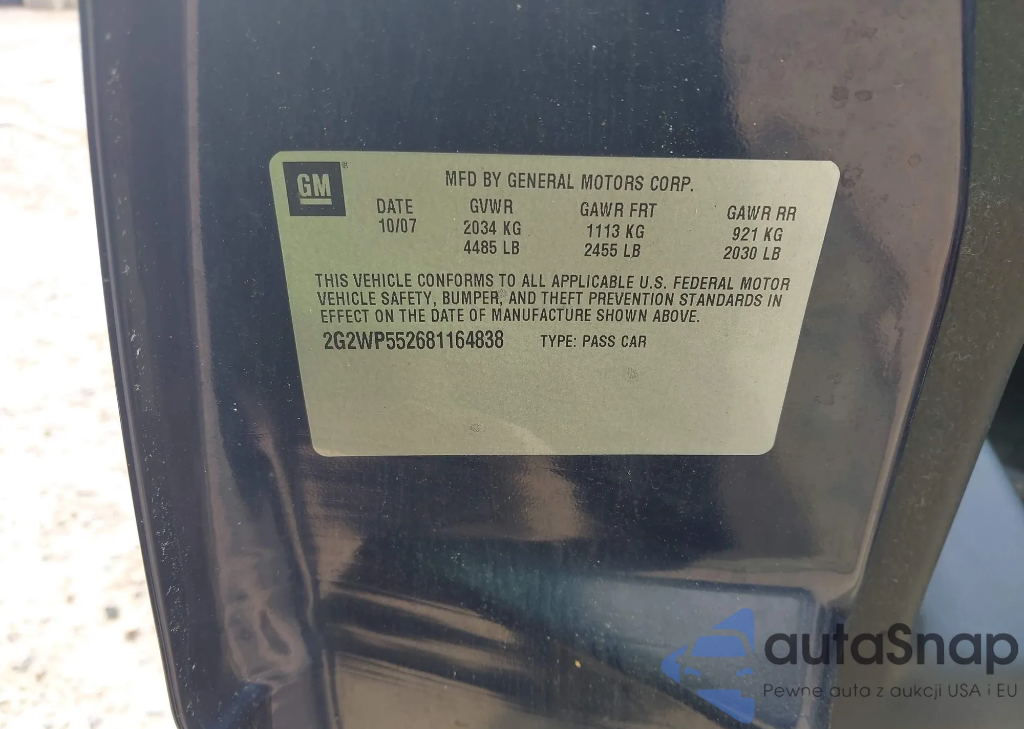 • VIN 2G2WP552681164838