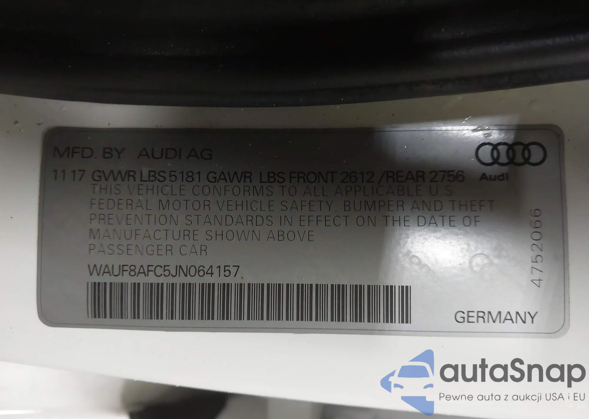 LOT: 41888774 VIN: WAUF8AFC5JN064157