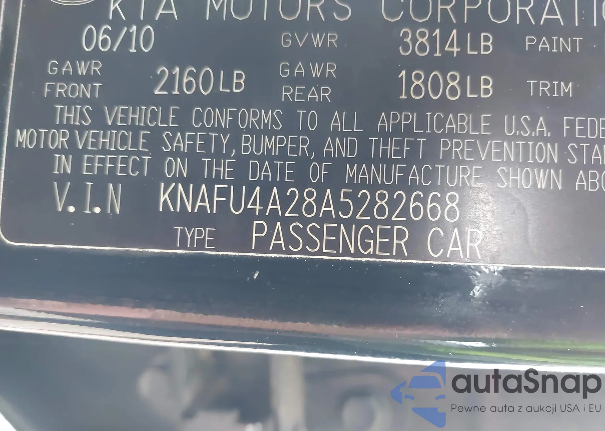 LOT: 42448266 VIN: KNAFU4A28A5282668