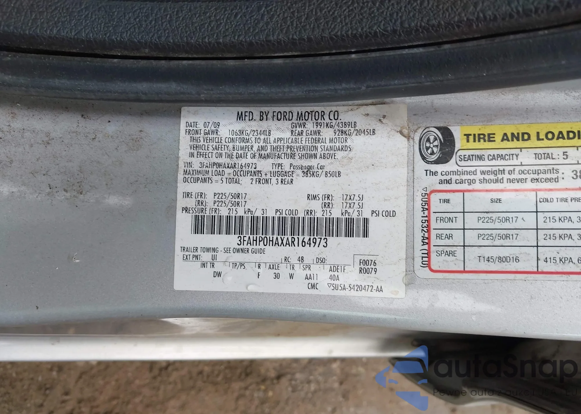 • VIN 1FAHP3K20CL265296