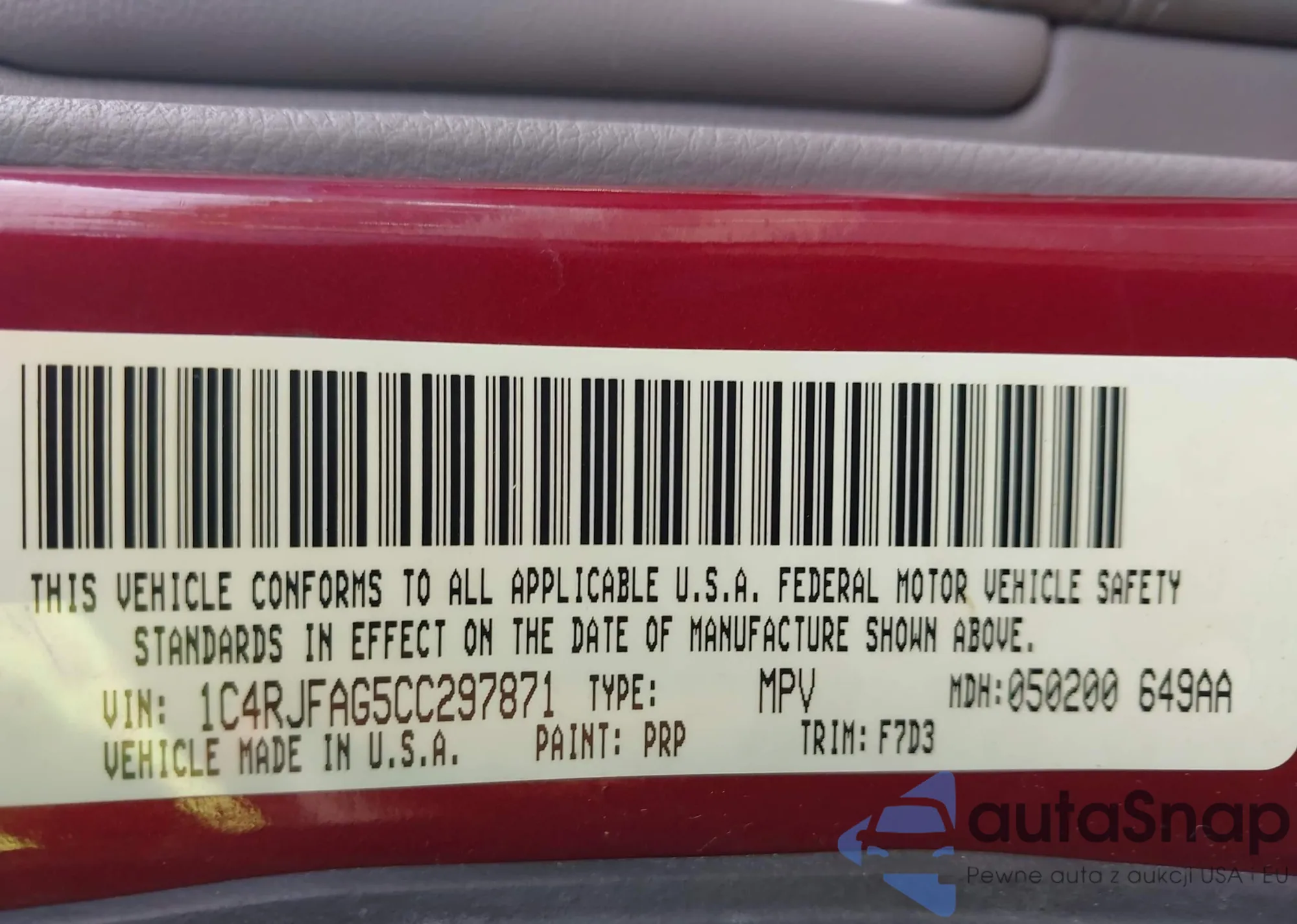 • VIN 1C4RJFAG5CC297871