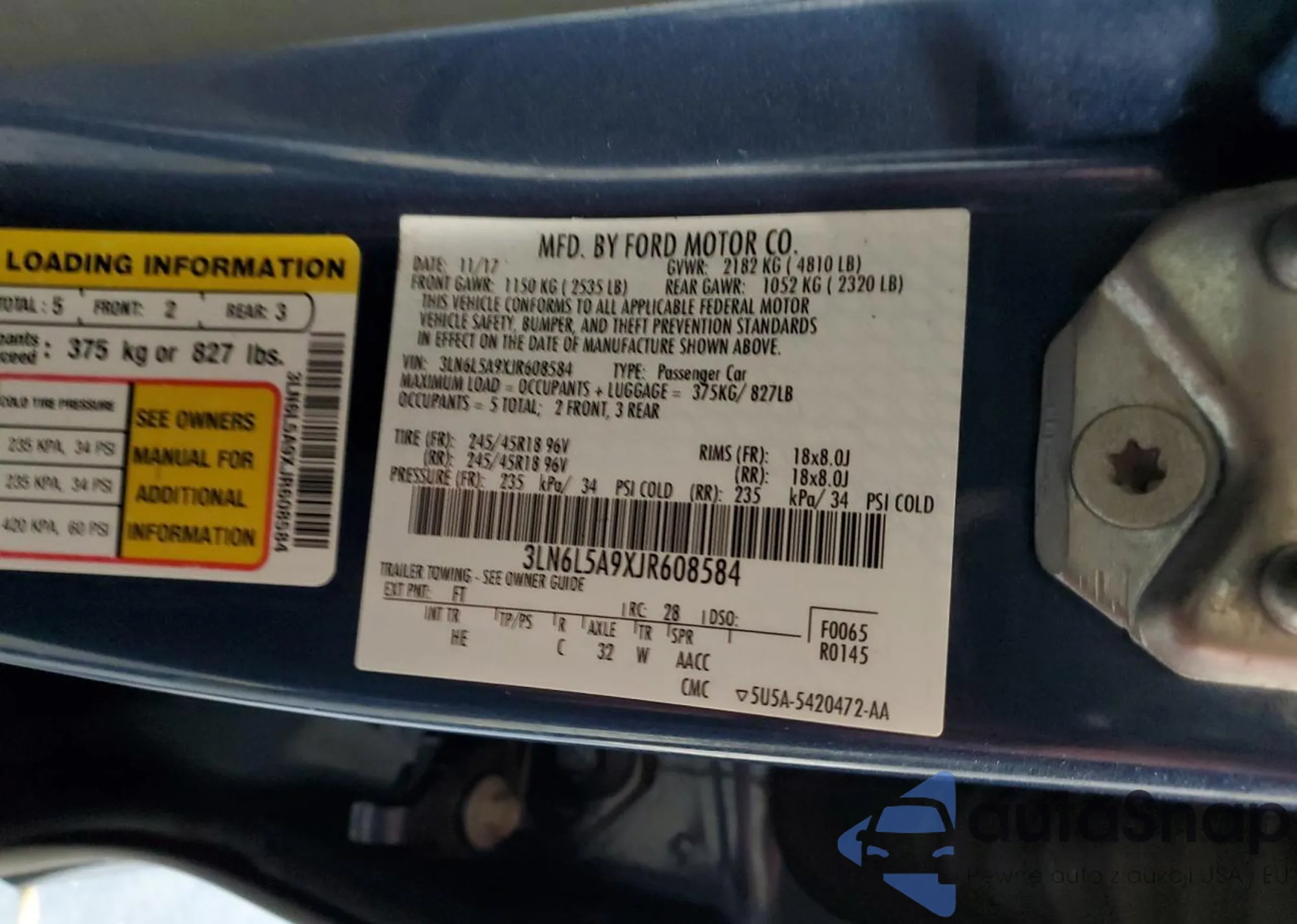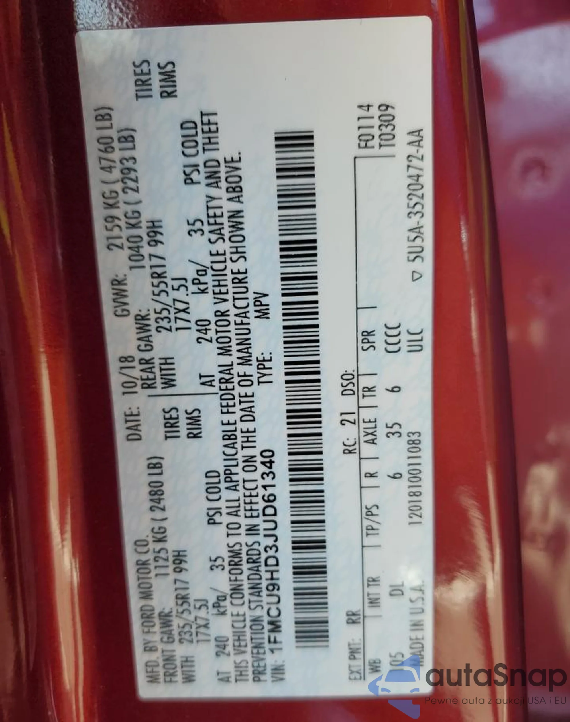• VIN 1FMCU9HD3JUD61340