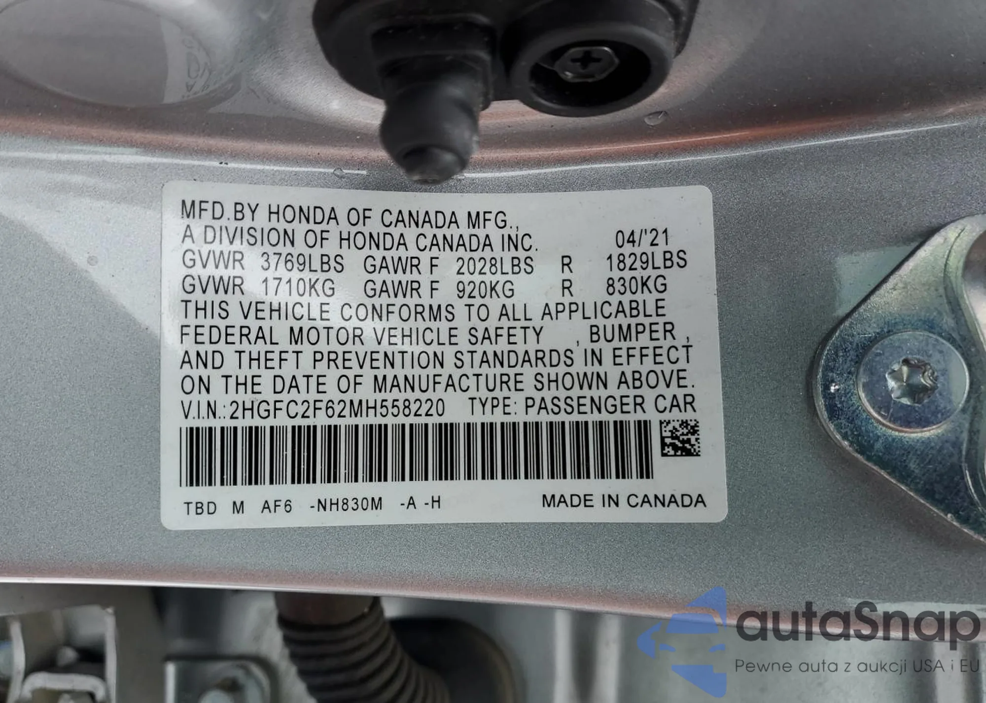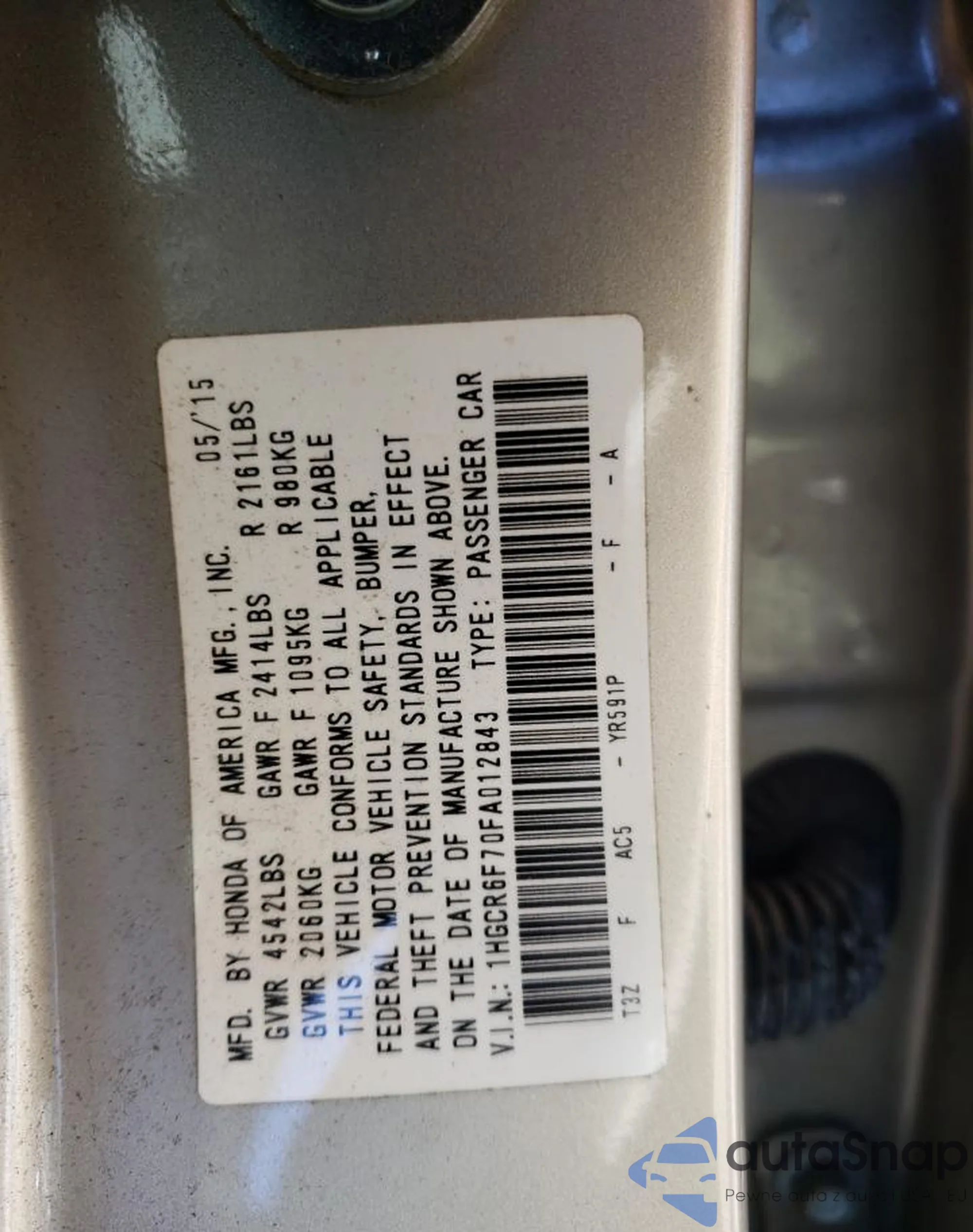 • VIN 1HGCV1F35JA205218