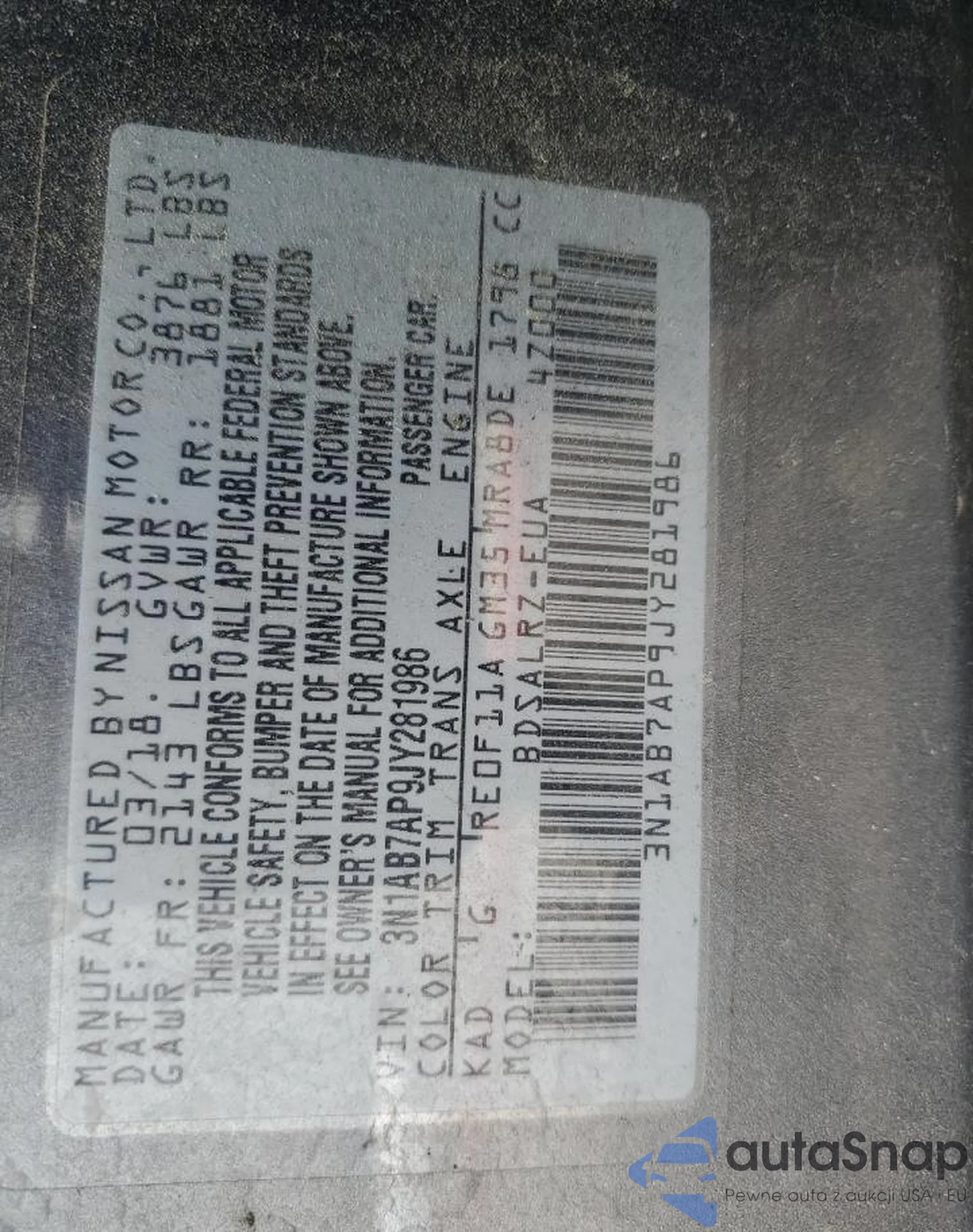 • VIN 3N1AB7AP9JY281986