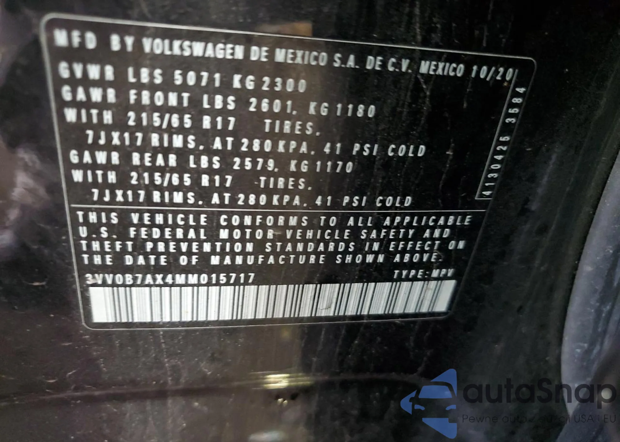 • VIN 3VV0B7AX4MM015717
