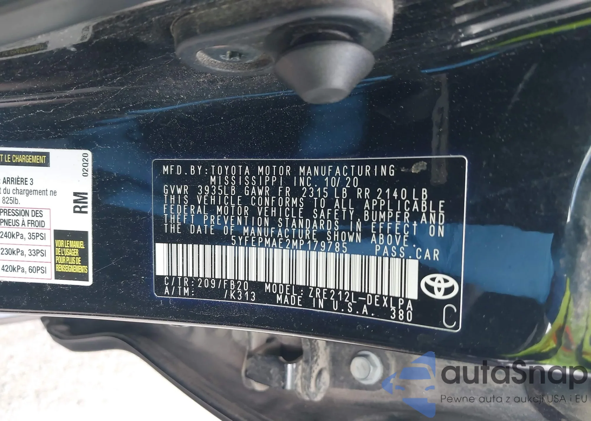 • VIN 5YFEPMAE2MP179785
