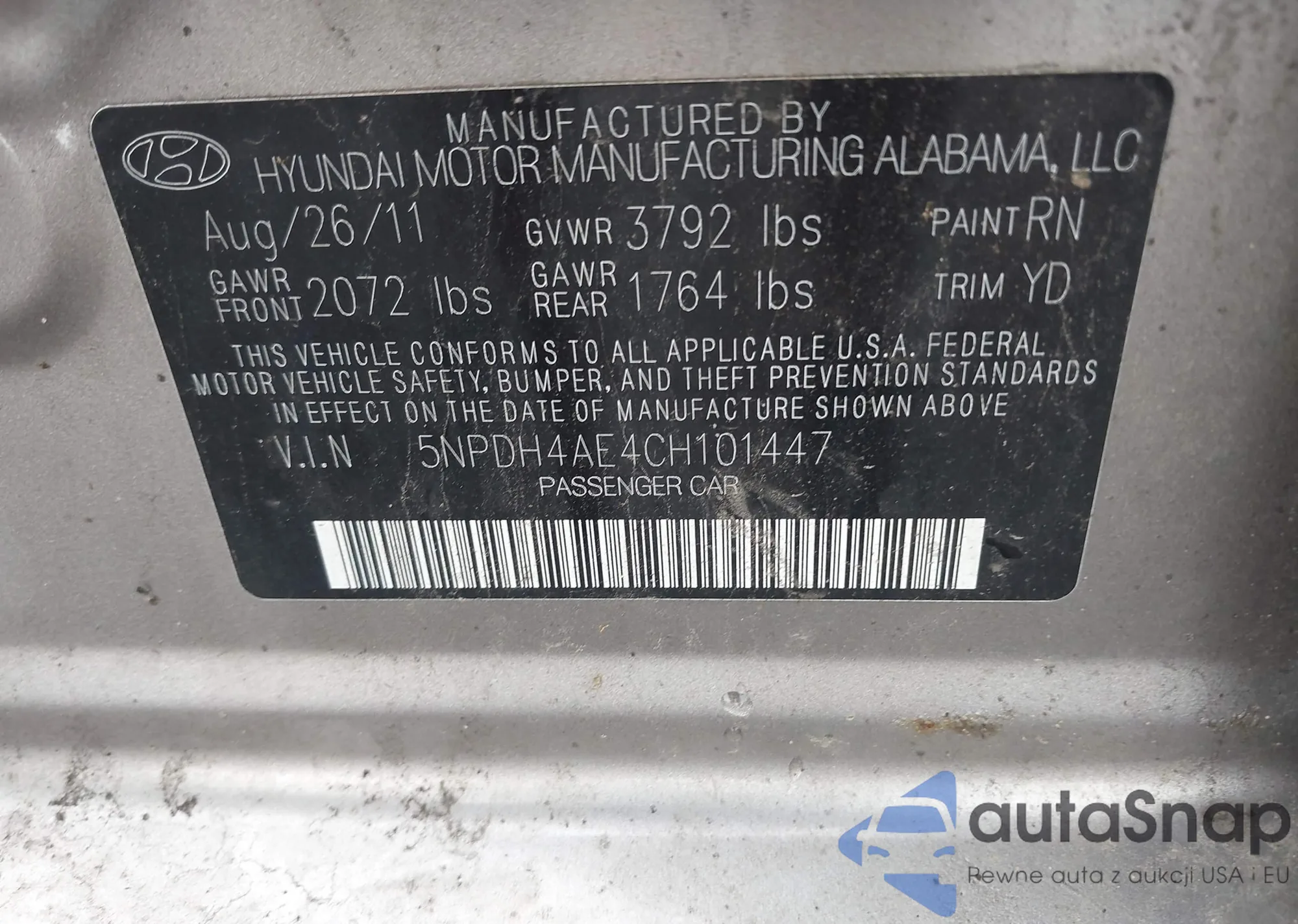 LOT: 42293492 VIN: 5NPDH4AE4CH101447