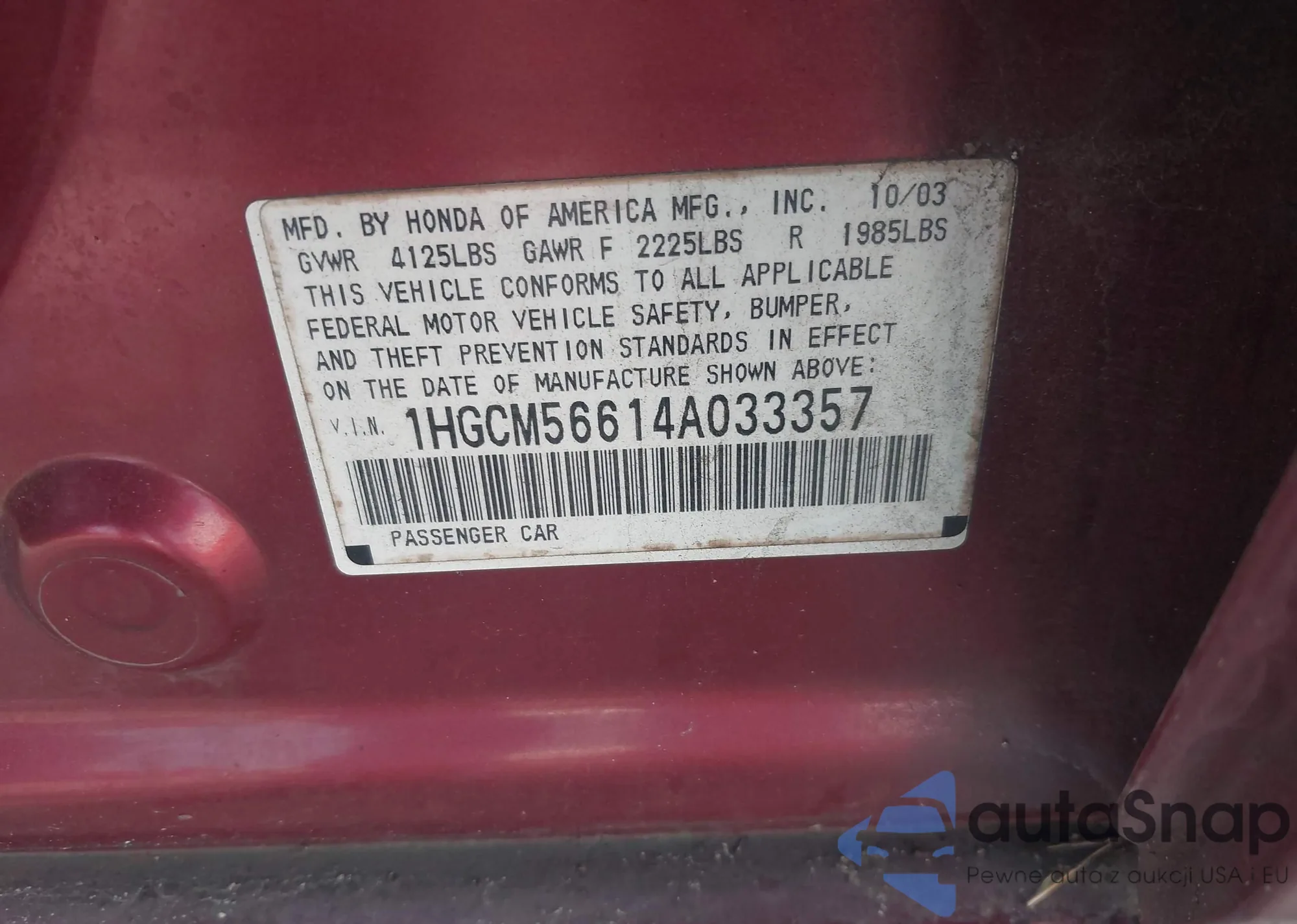 LOT: 42221428 VIN: 5FNYF18625B062816