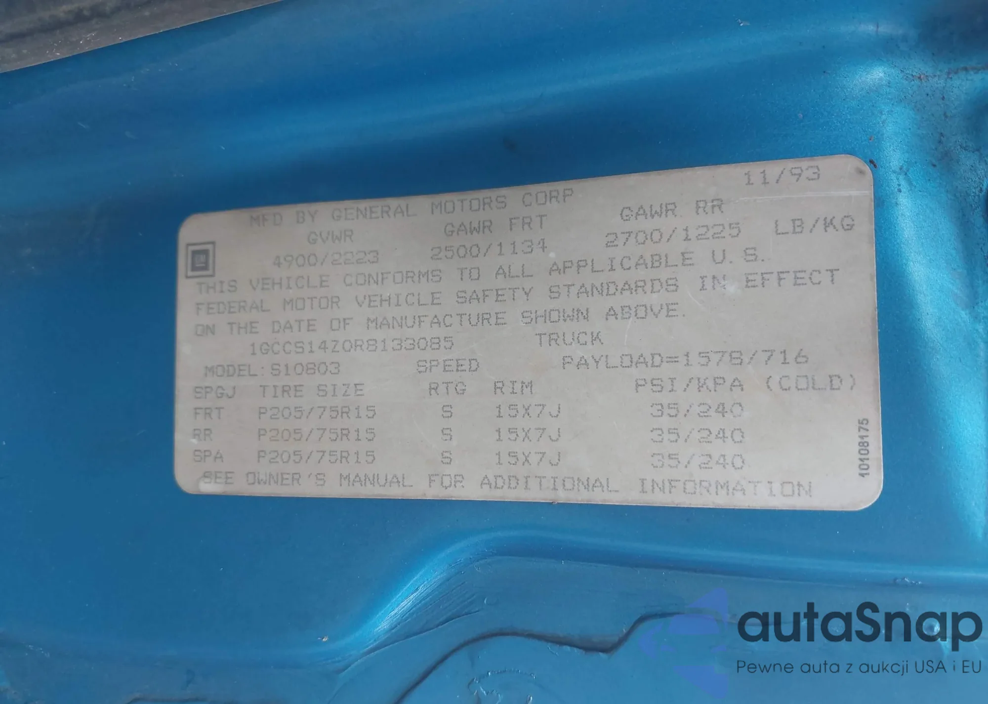 • VIN WBAPK7C54BA970954