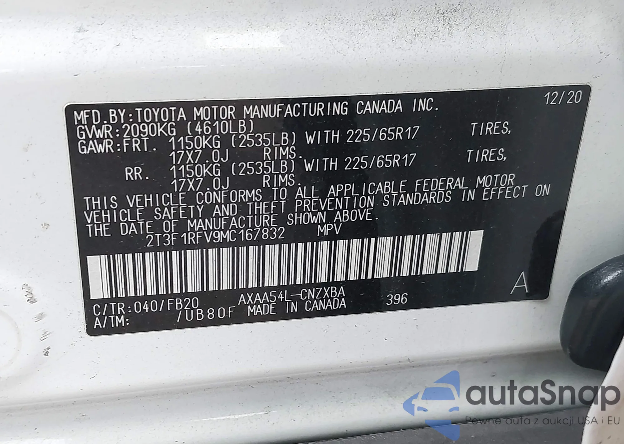 LOT: 42071500 VIN: 1HGCV2F59JA007801
