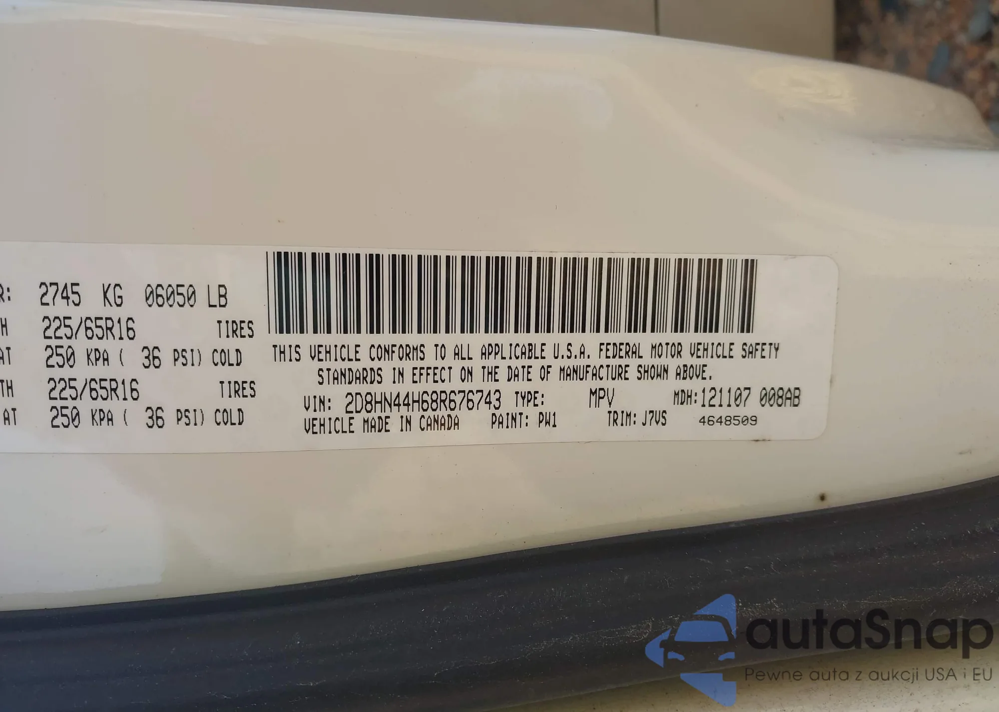 • VIN 2D8HN44H68R676743