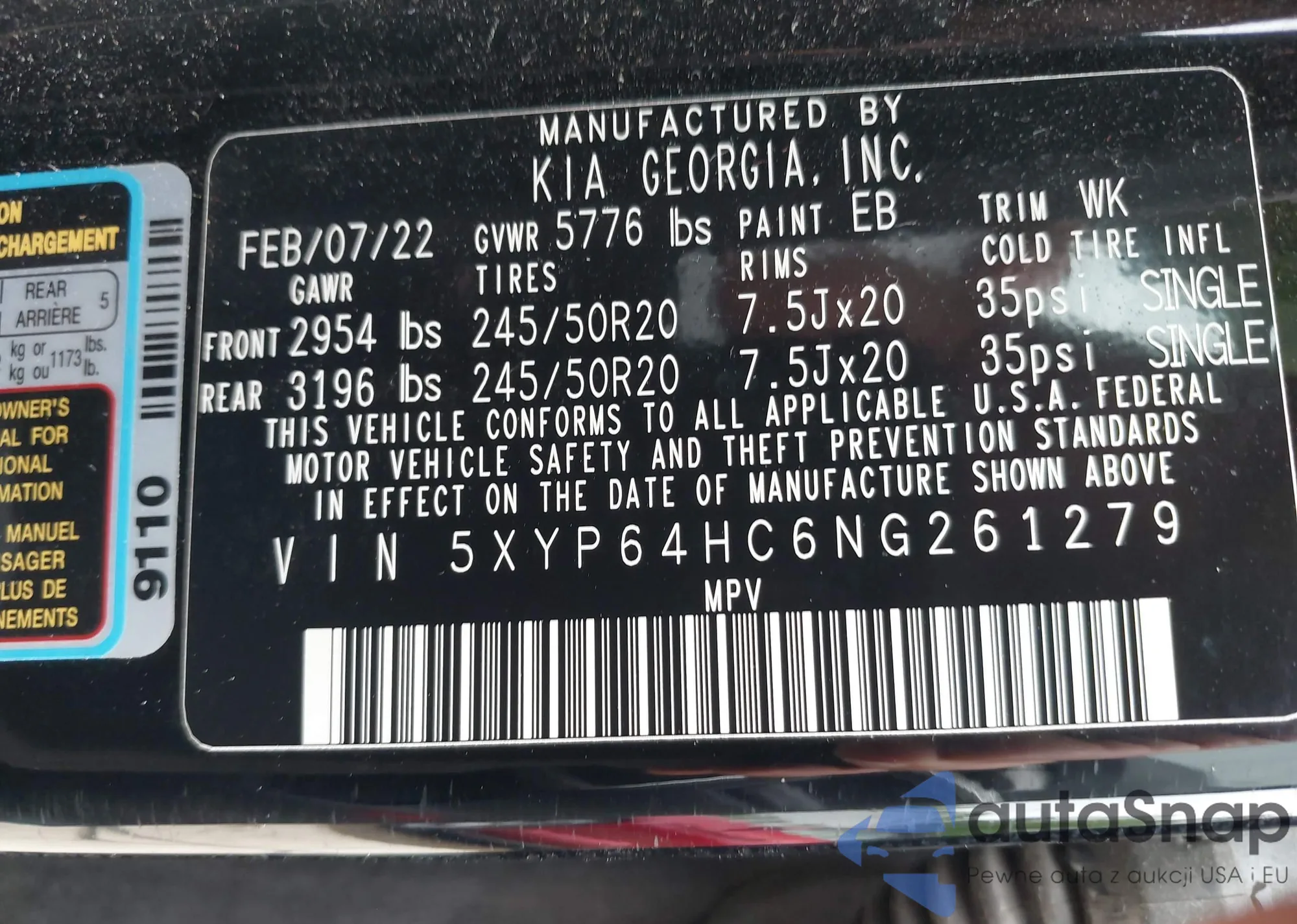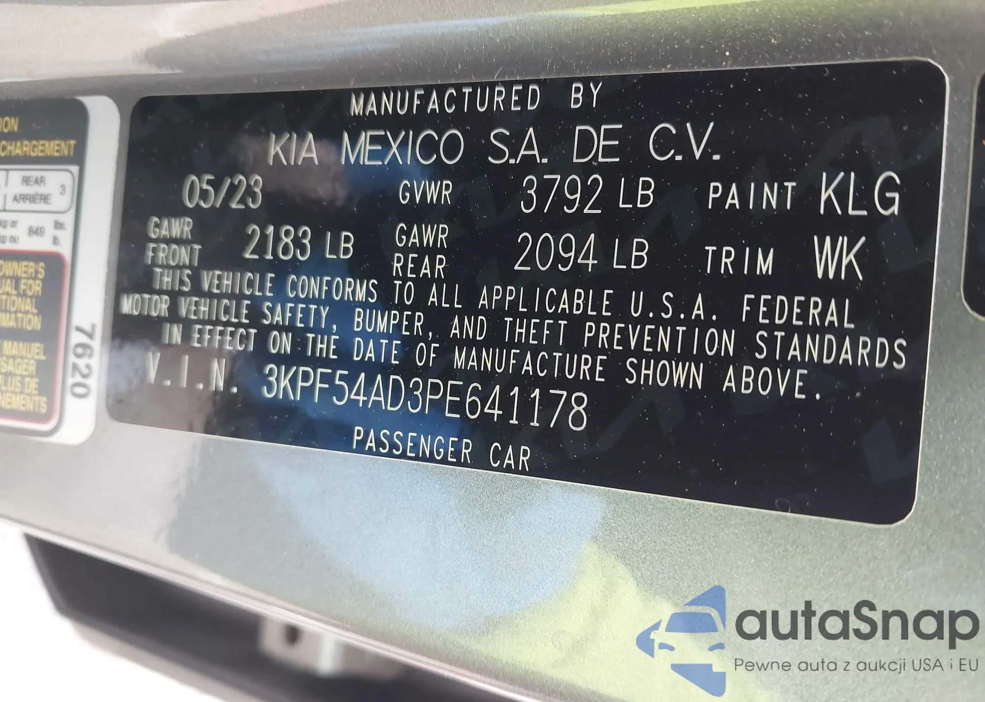 LOT: 42114495 VIN: 3KPF54AD3PE641178