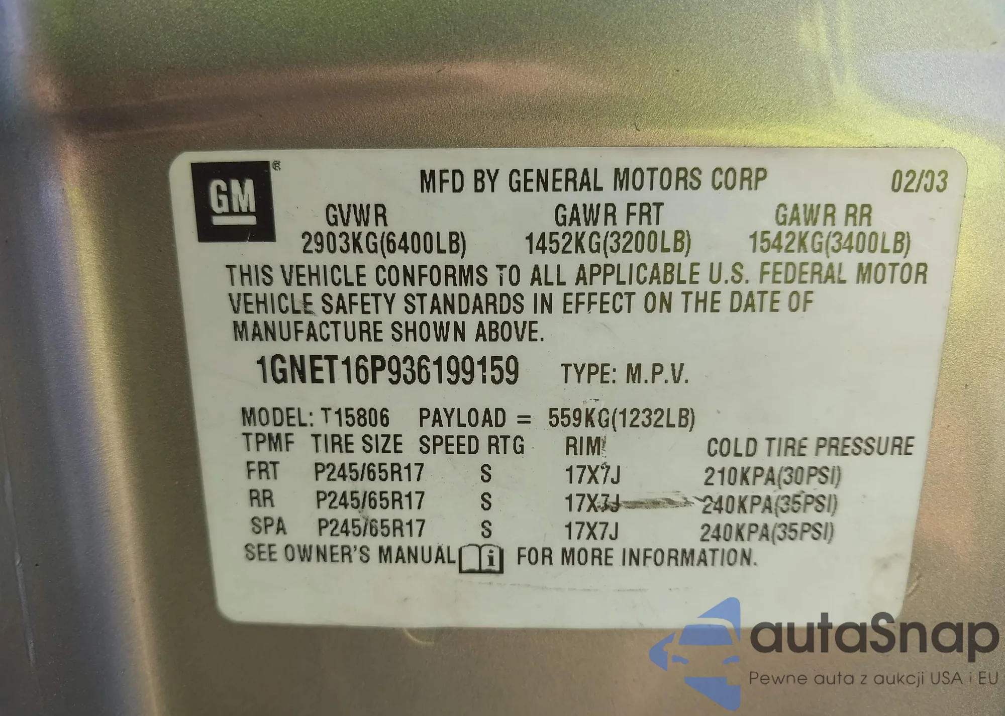 LOT: 42150567 VIN: 1GNET16P936199159