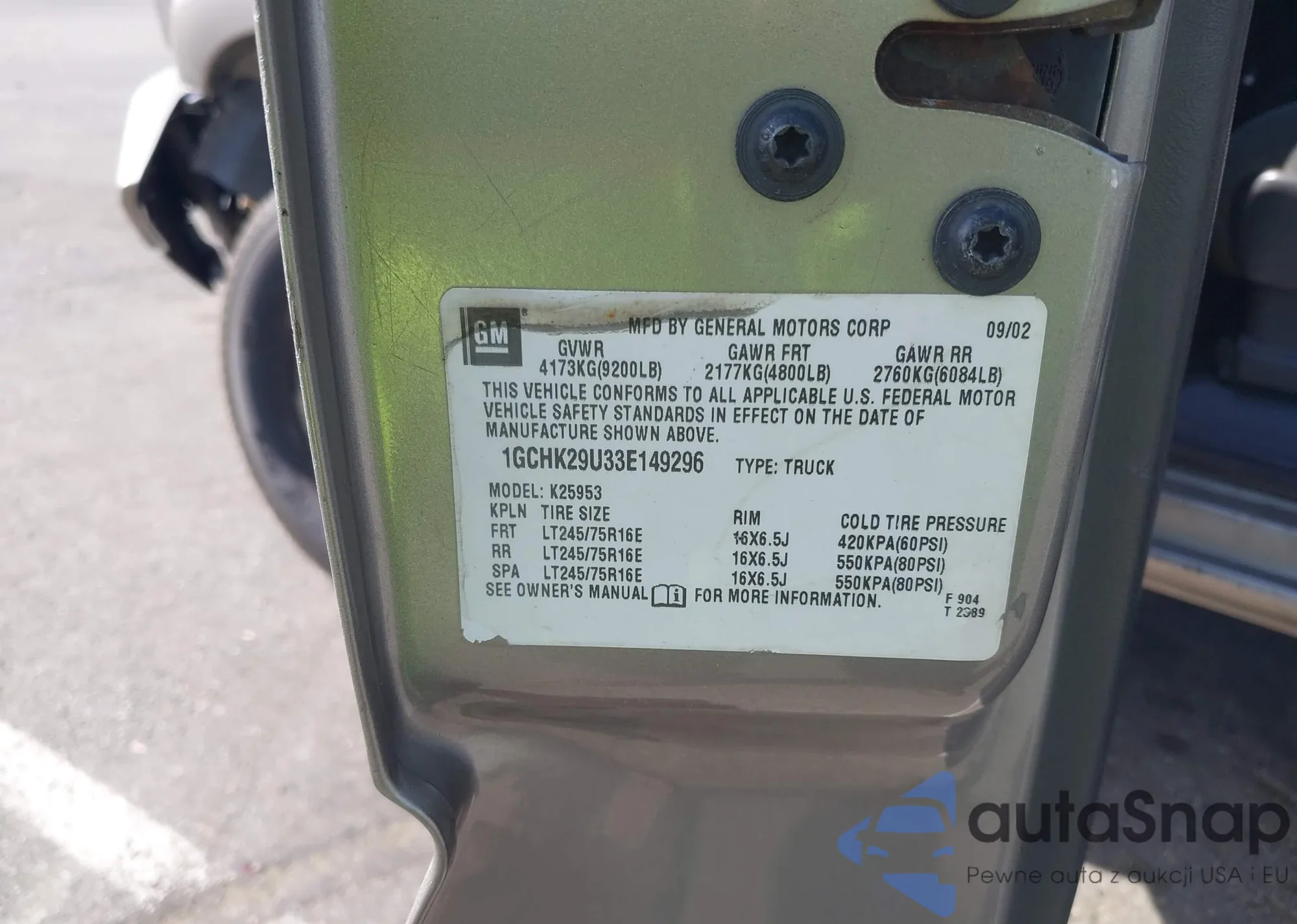 LOT: 42155765 VIN: 1GCHK29U33E149296