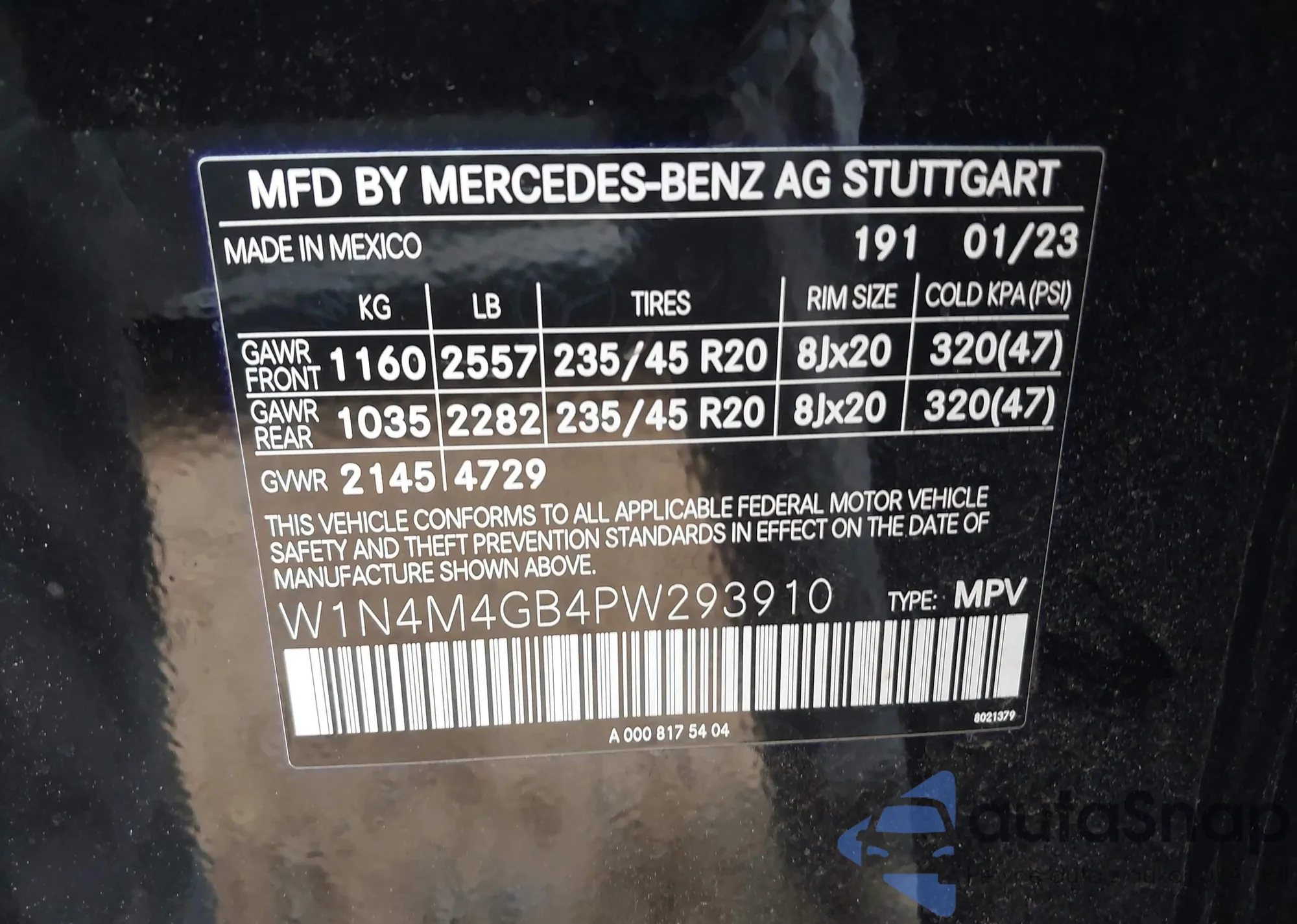 • VIN W1N4M4GB4PW293910