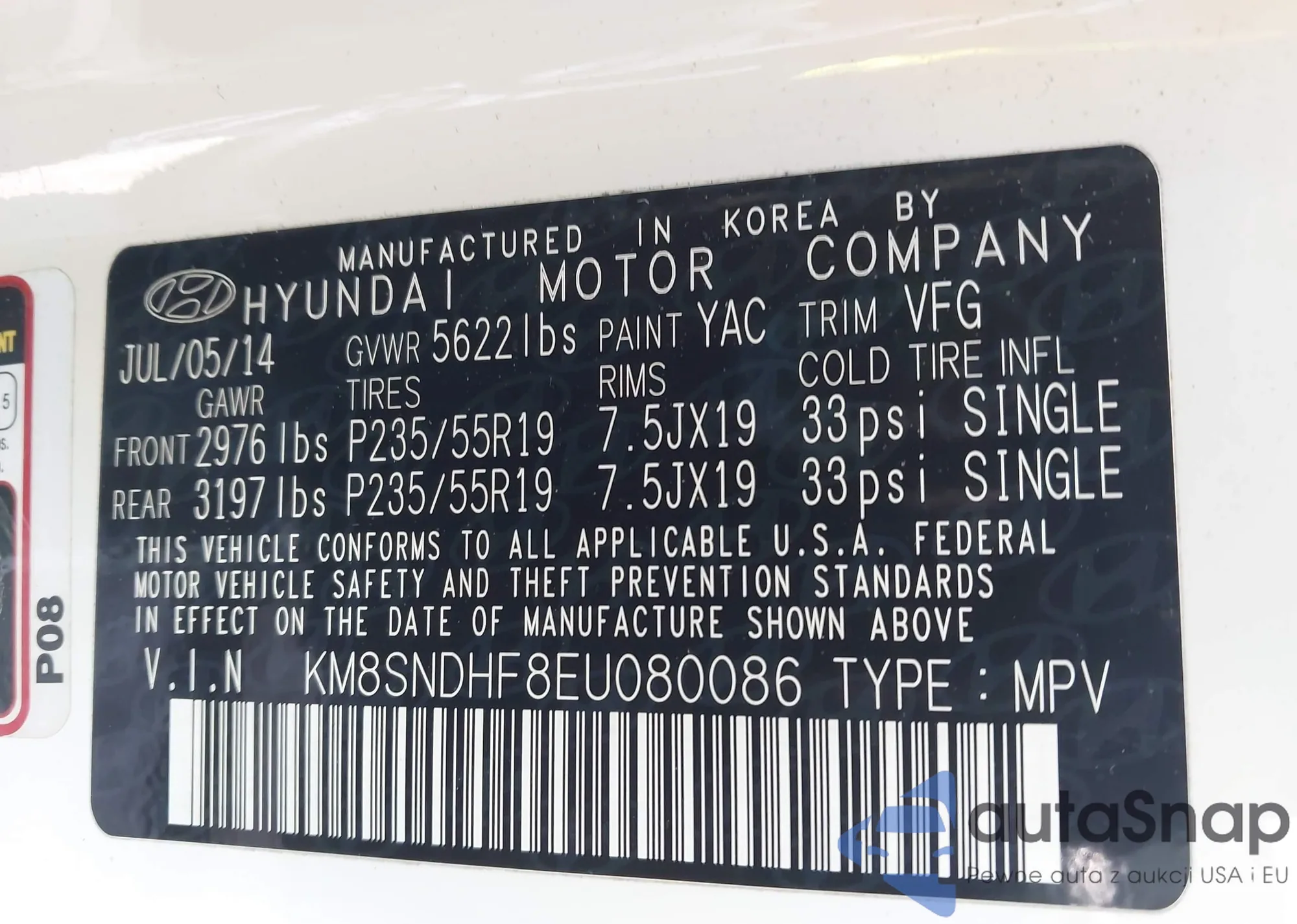 • VIN KM8SNDHF8EU080086