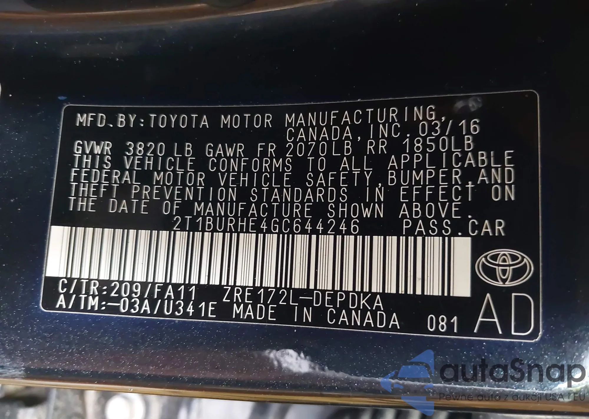 • VIN 2T1BURHE4GC644246