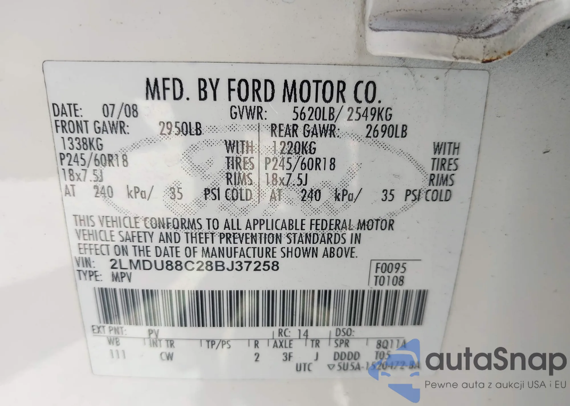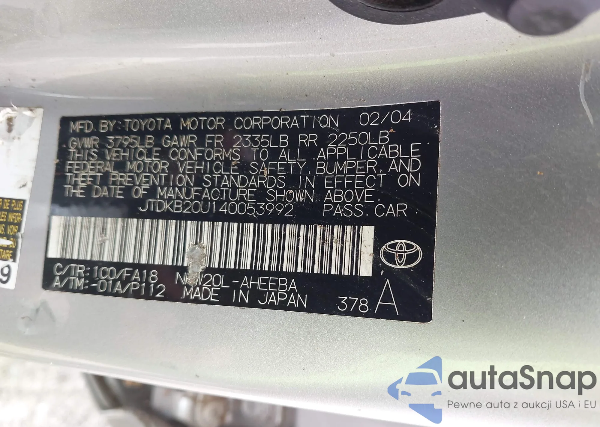 LOT: 42436429 VIN: JTDKB20U140053992