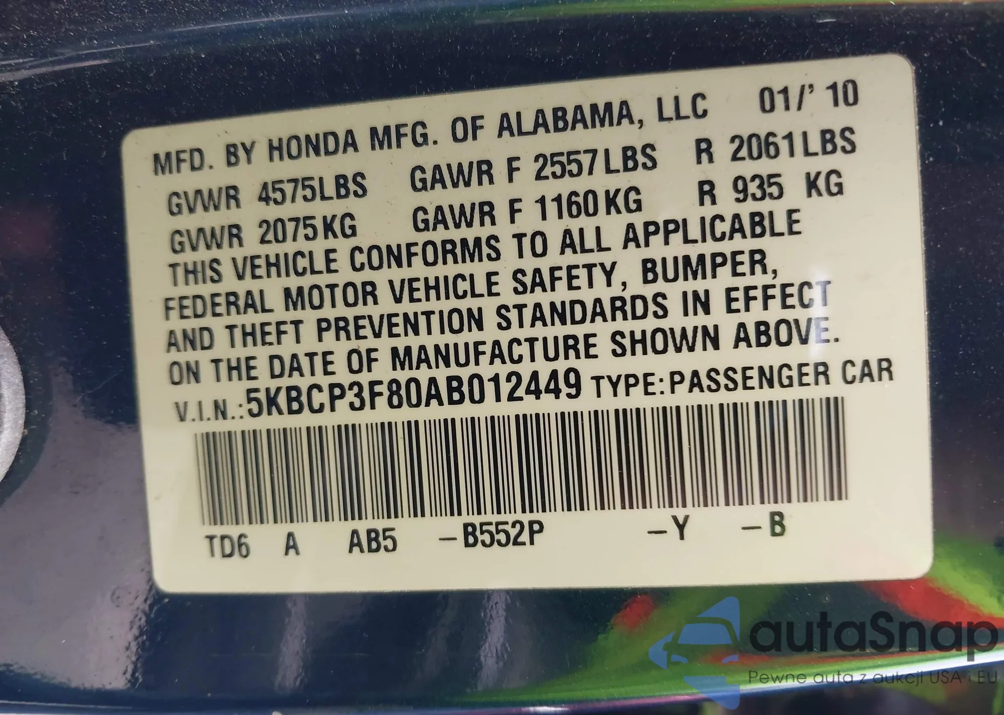 • VIN 5KBCP3F80AB012449