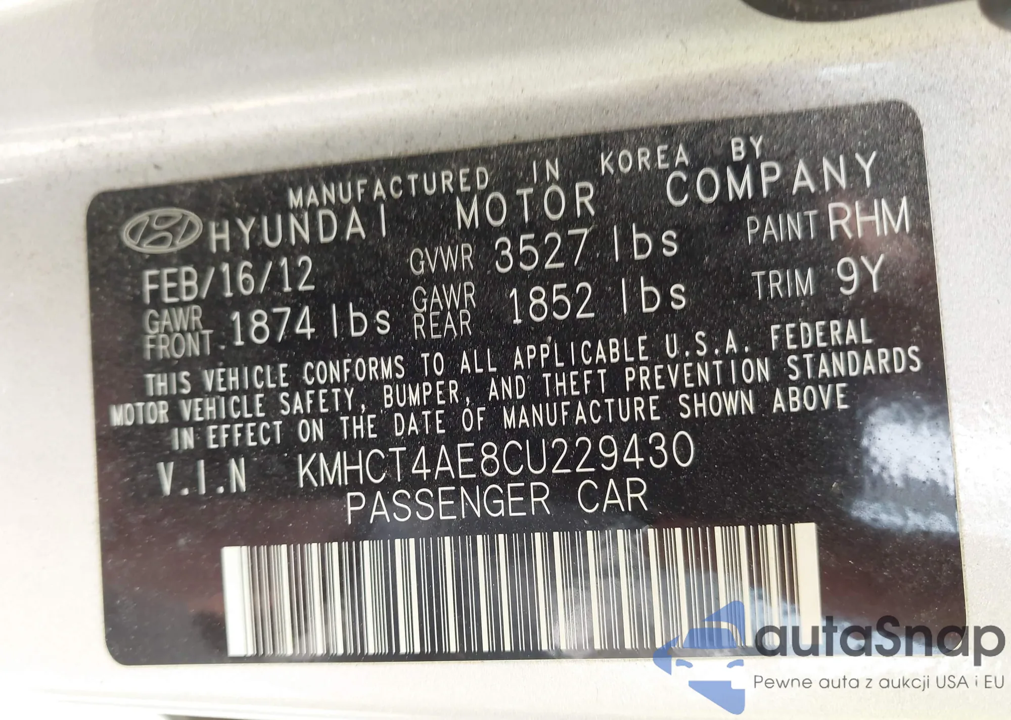 LOT: 42473522 VIN: KM8JUCAC6CU545146