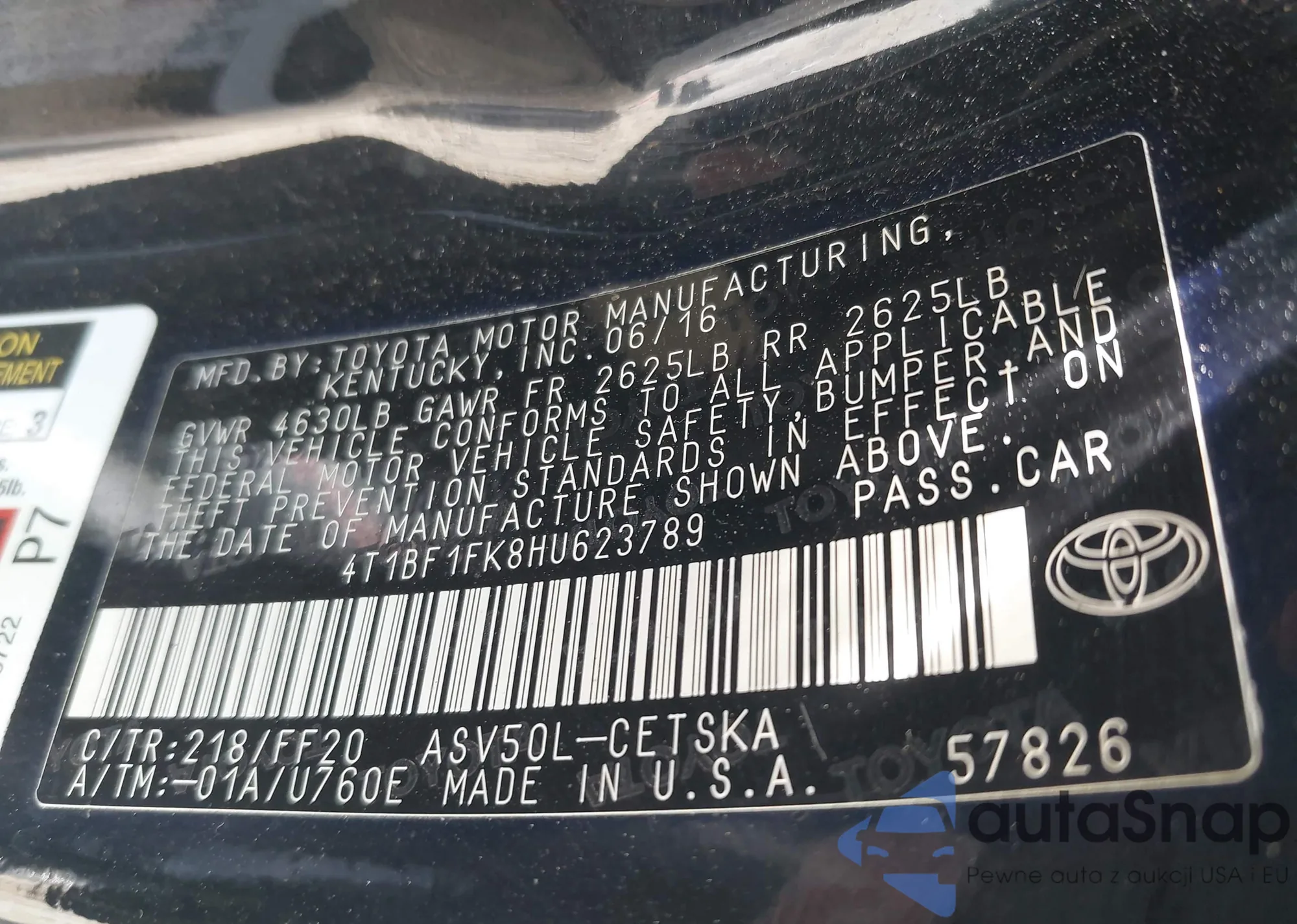 • VIN 4T1BF1FK8HU623789
