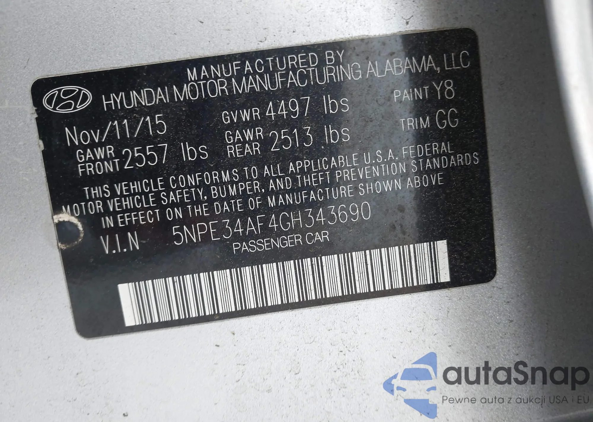 LOT: 42173050 VIN: 5NPE24AFXGH327870