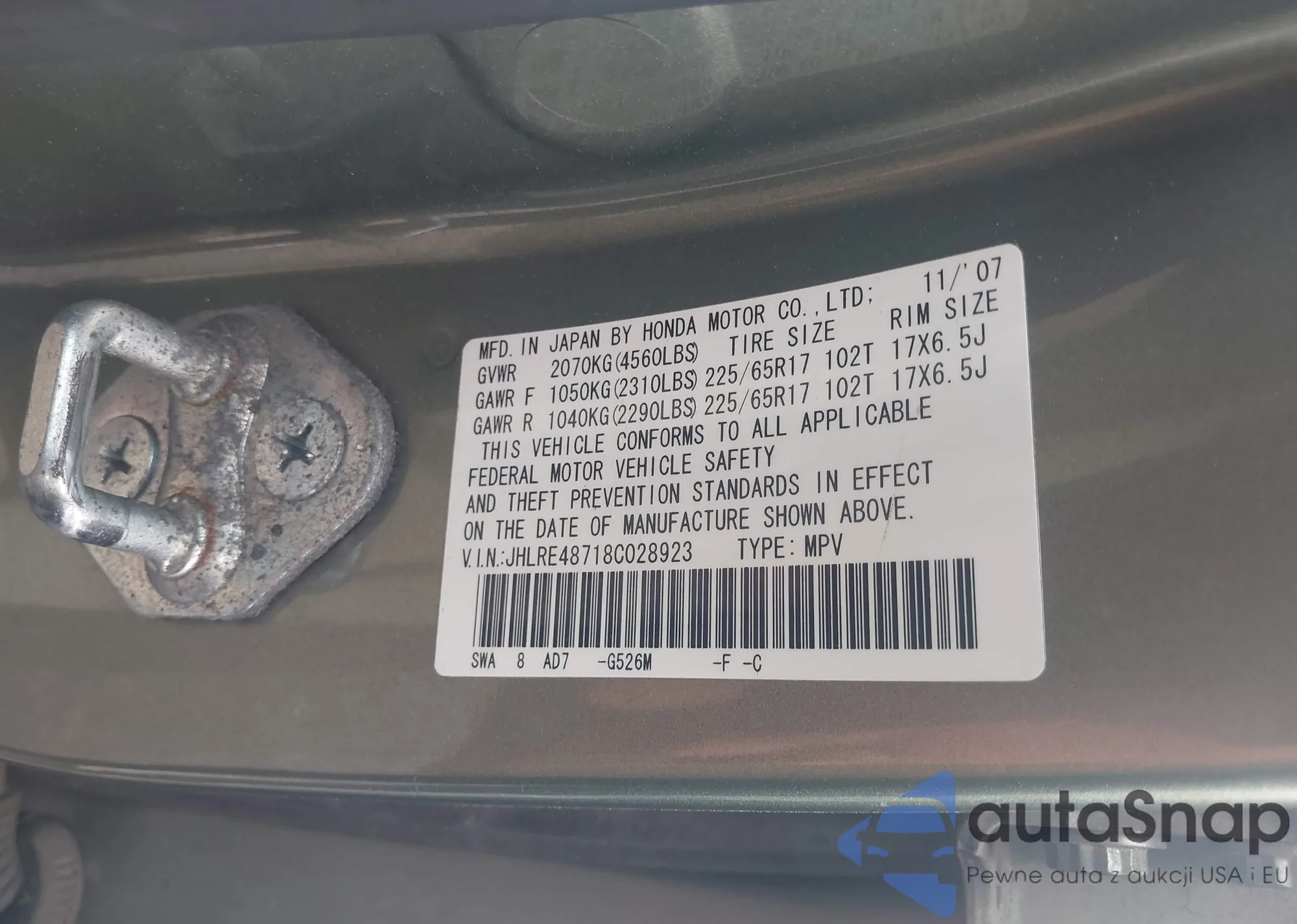 • VIN 2HKRW6H34JH233181