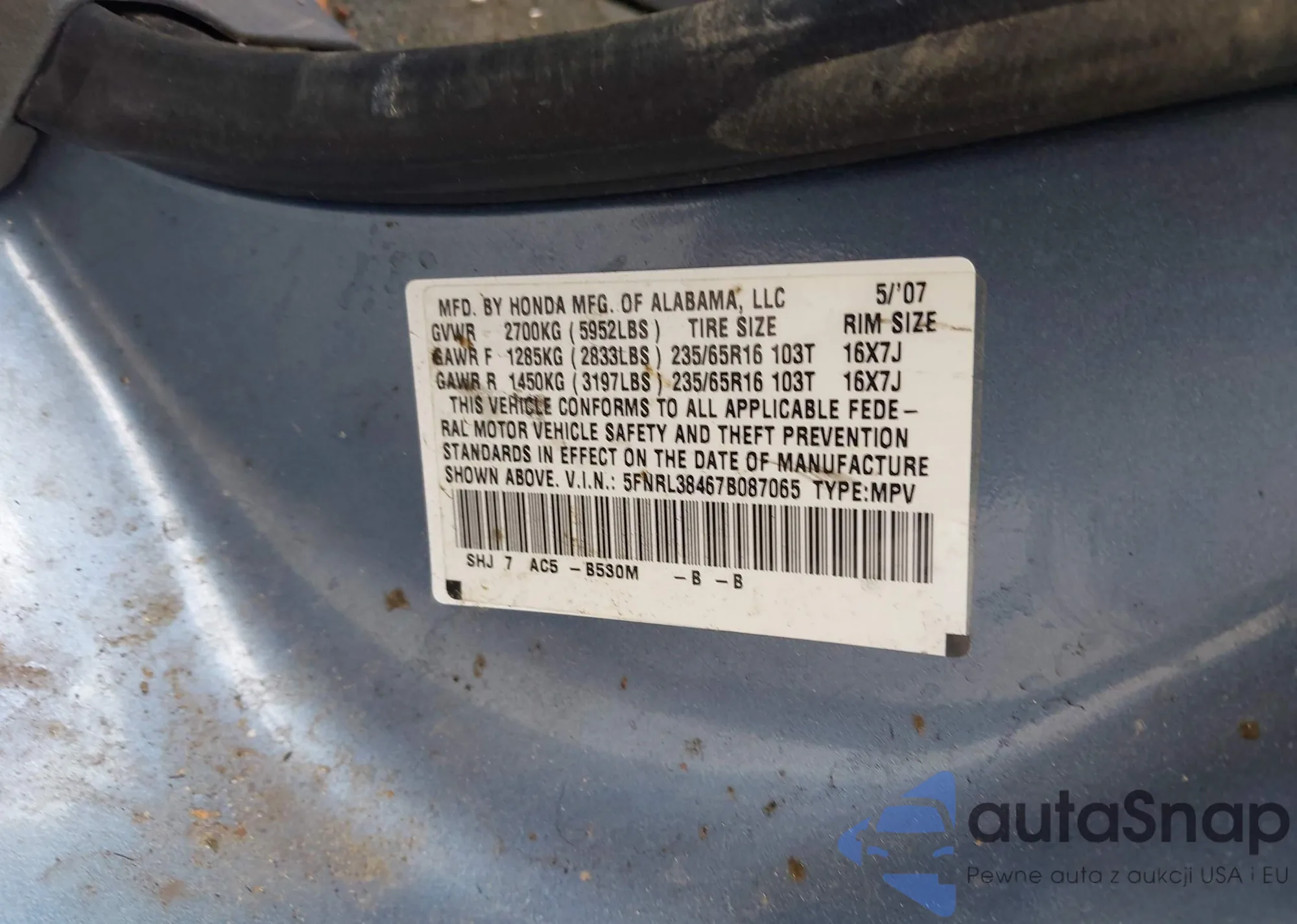 • VIN 5FNRL38718B115950