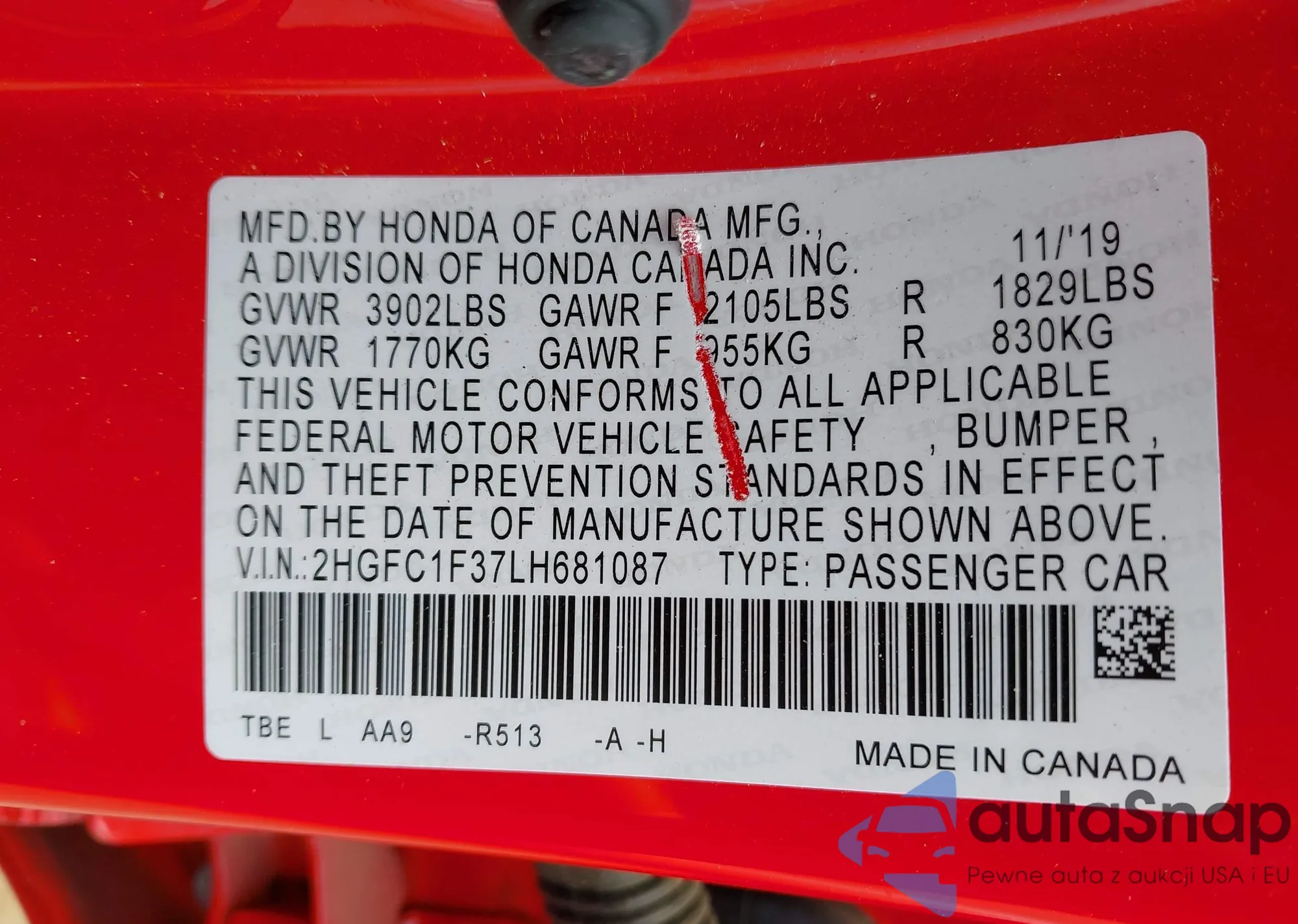 • VIN 2HGFC1F37LH681087