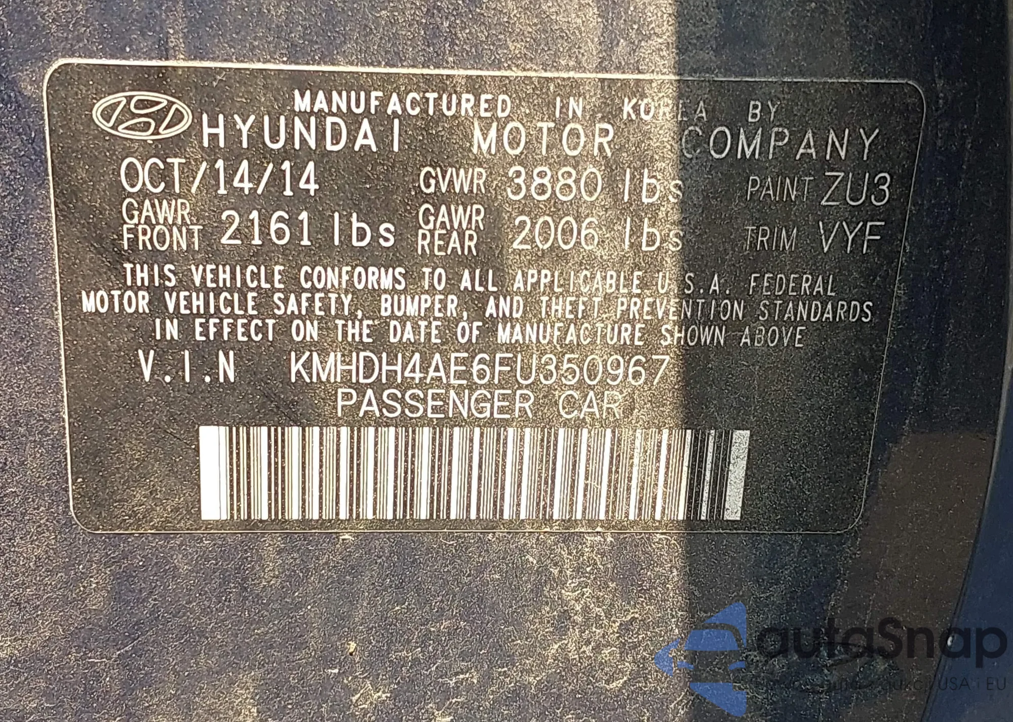• VIN KMHDH4AE6FU350967