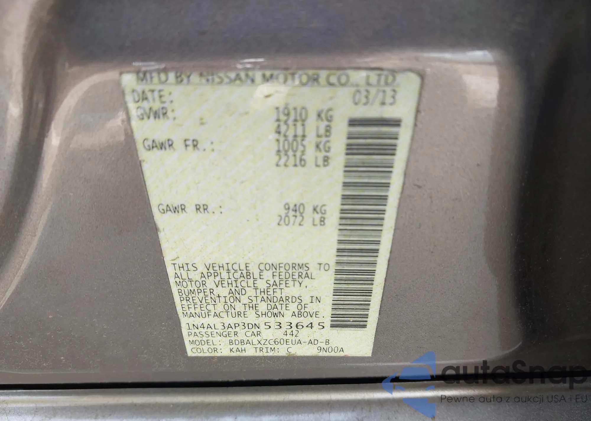 LOT: 42361124 VIN: 3N1AB7AP9FY373008