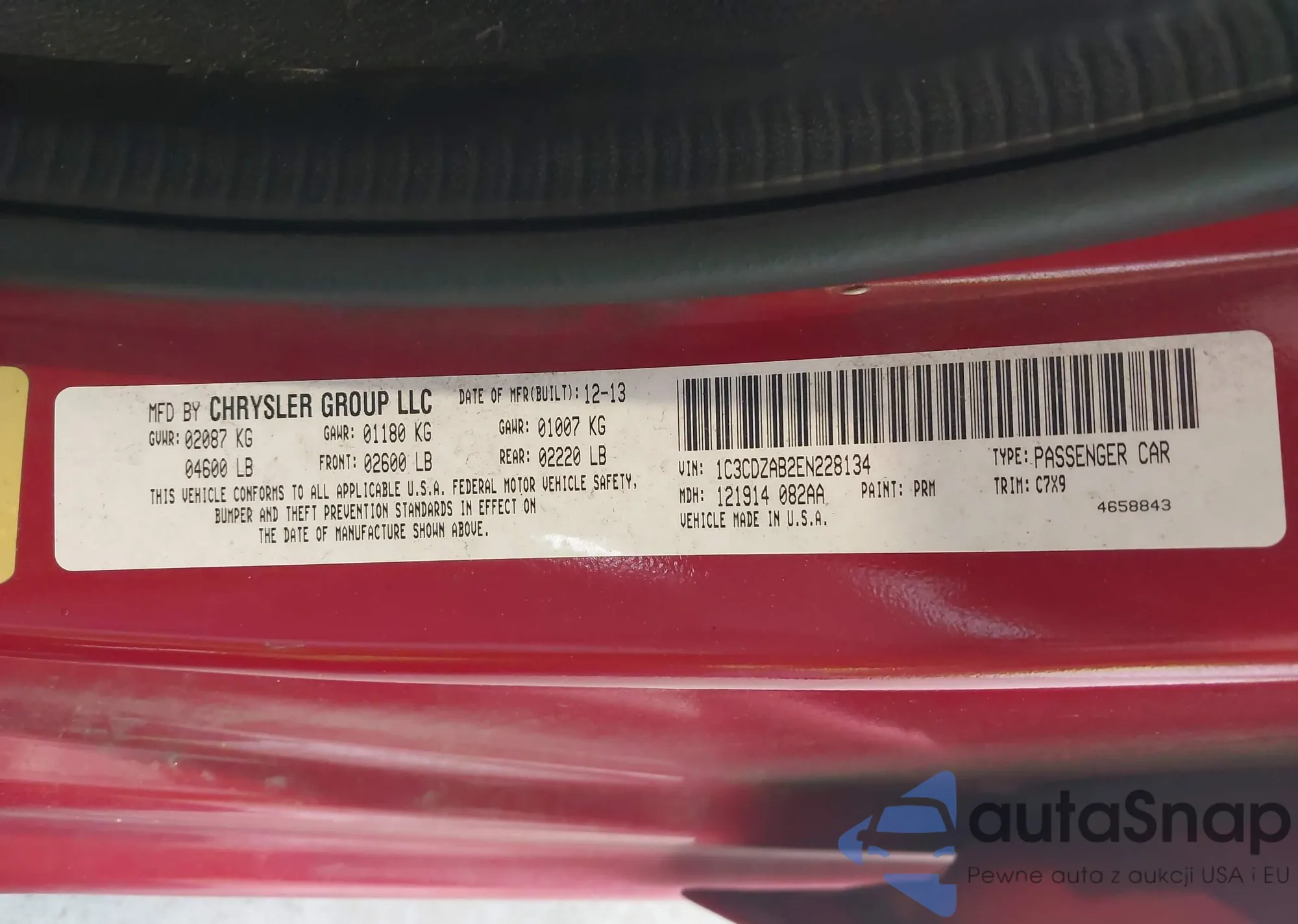 LOT: 42422357 VIN: 1C3CDZAB2EN228134