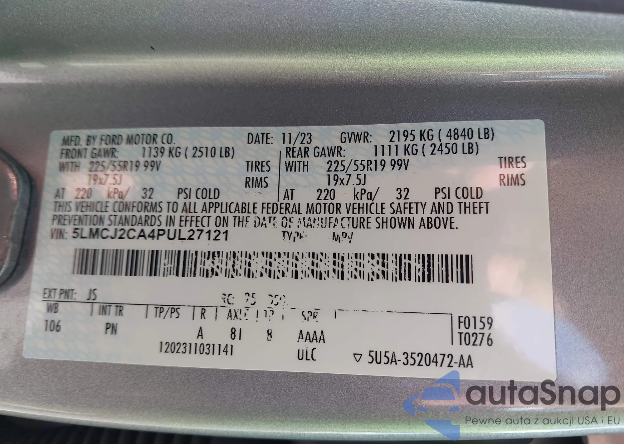 • VIN 5LMCJ2CA4PUL27121