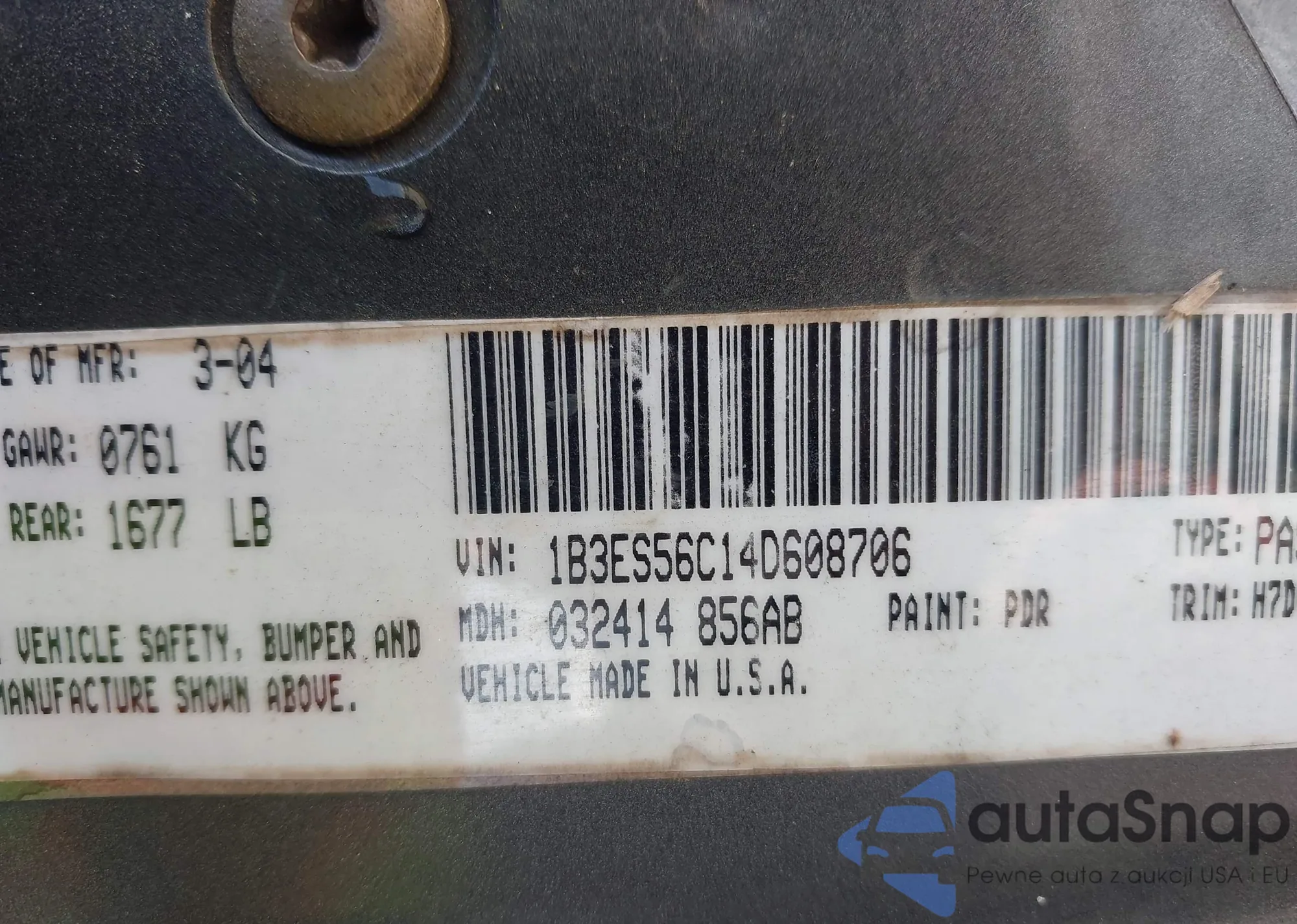 LOT: 42379187 VIN: 1B3ES56C13D144766
