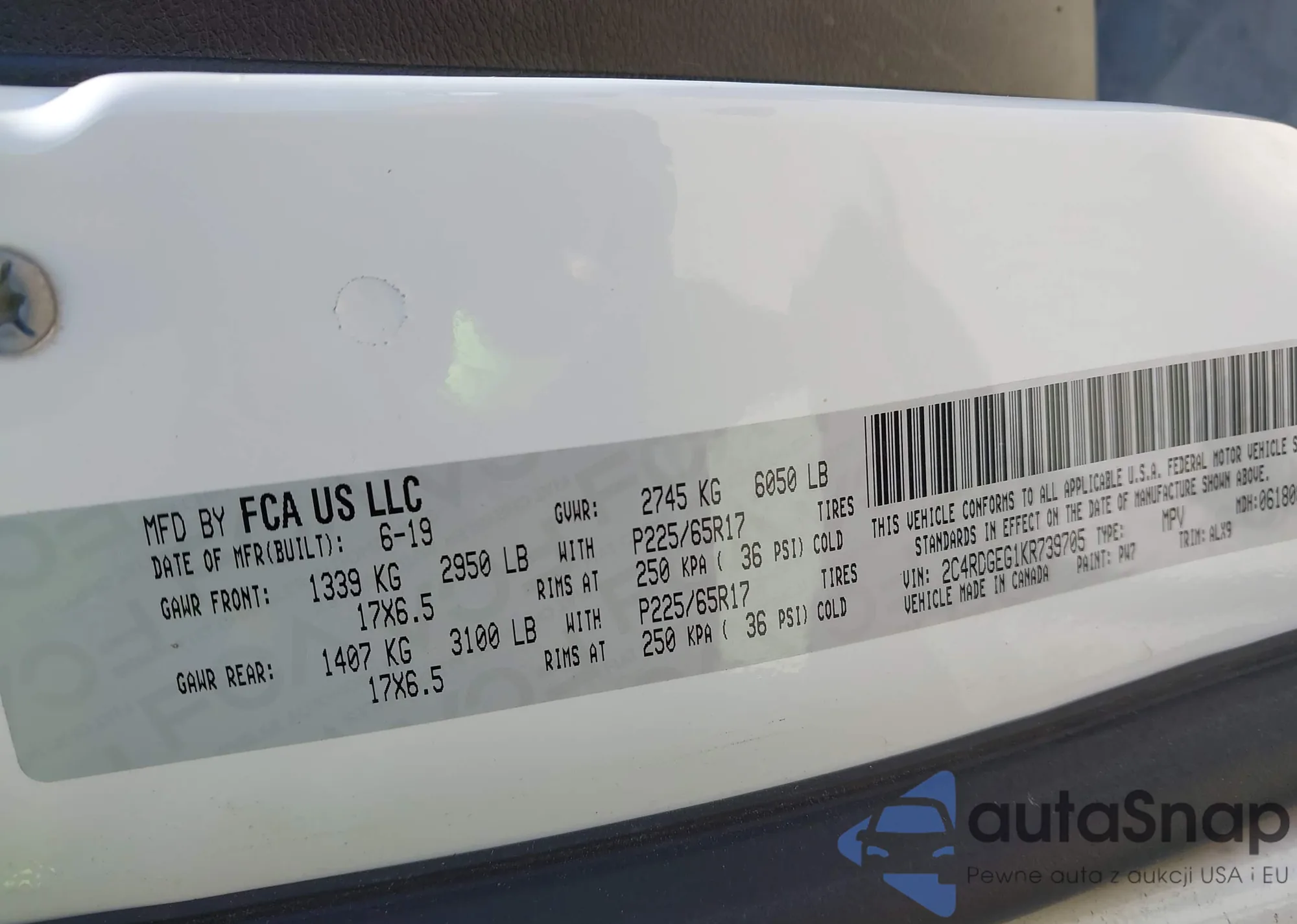 LOT: 42064575 VIN: 2C4RDGEG1KR739705