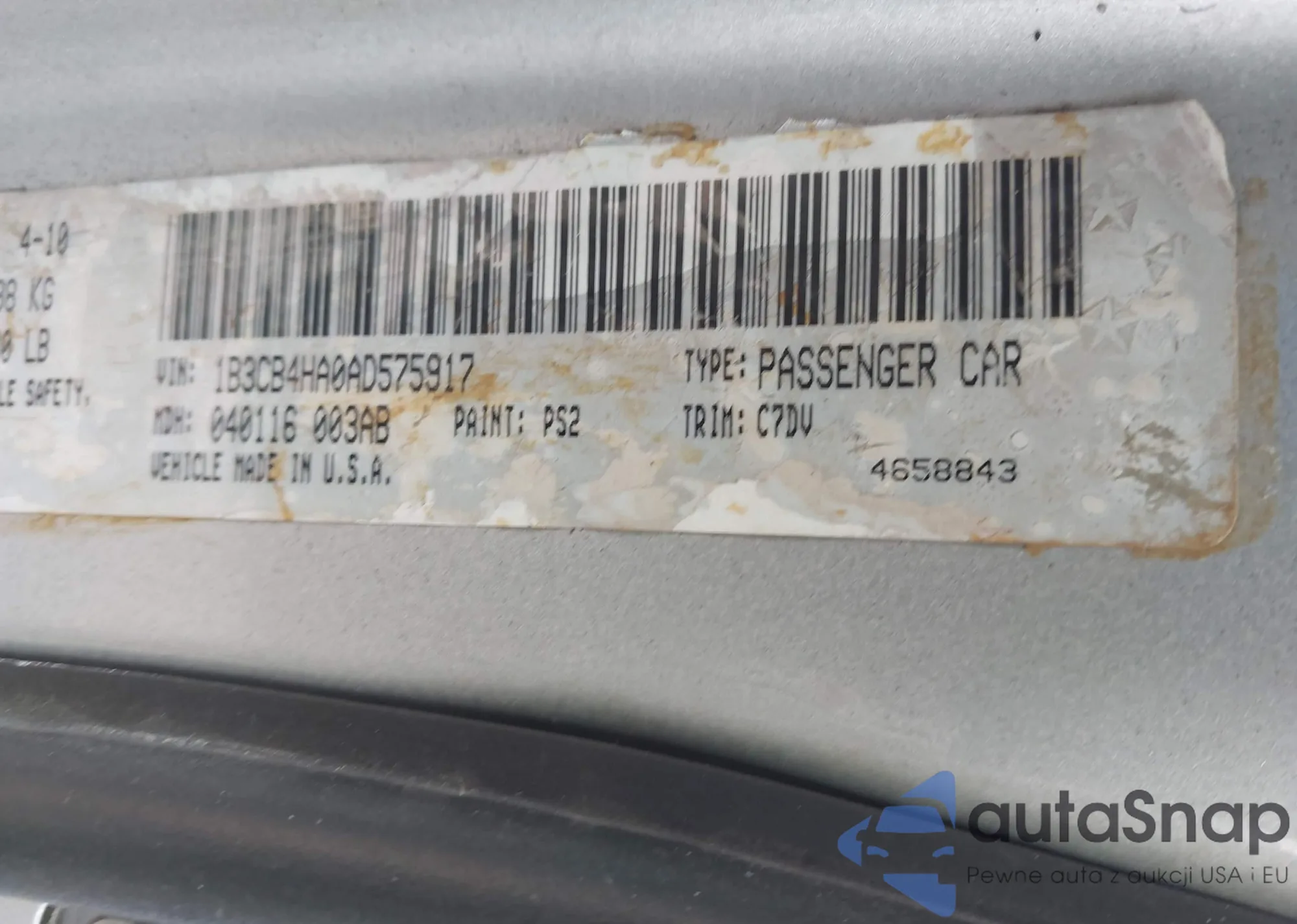 LOT: 42227600 VIN: 2HNYD2H64AH521807