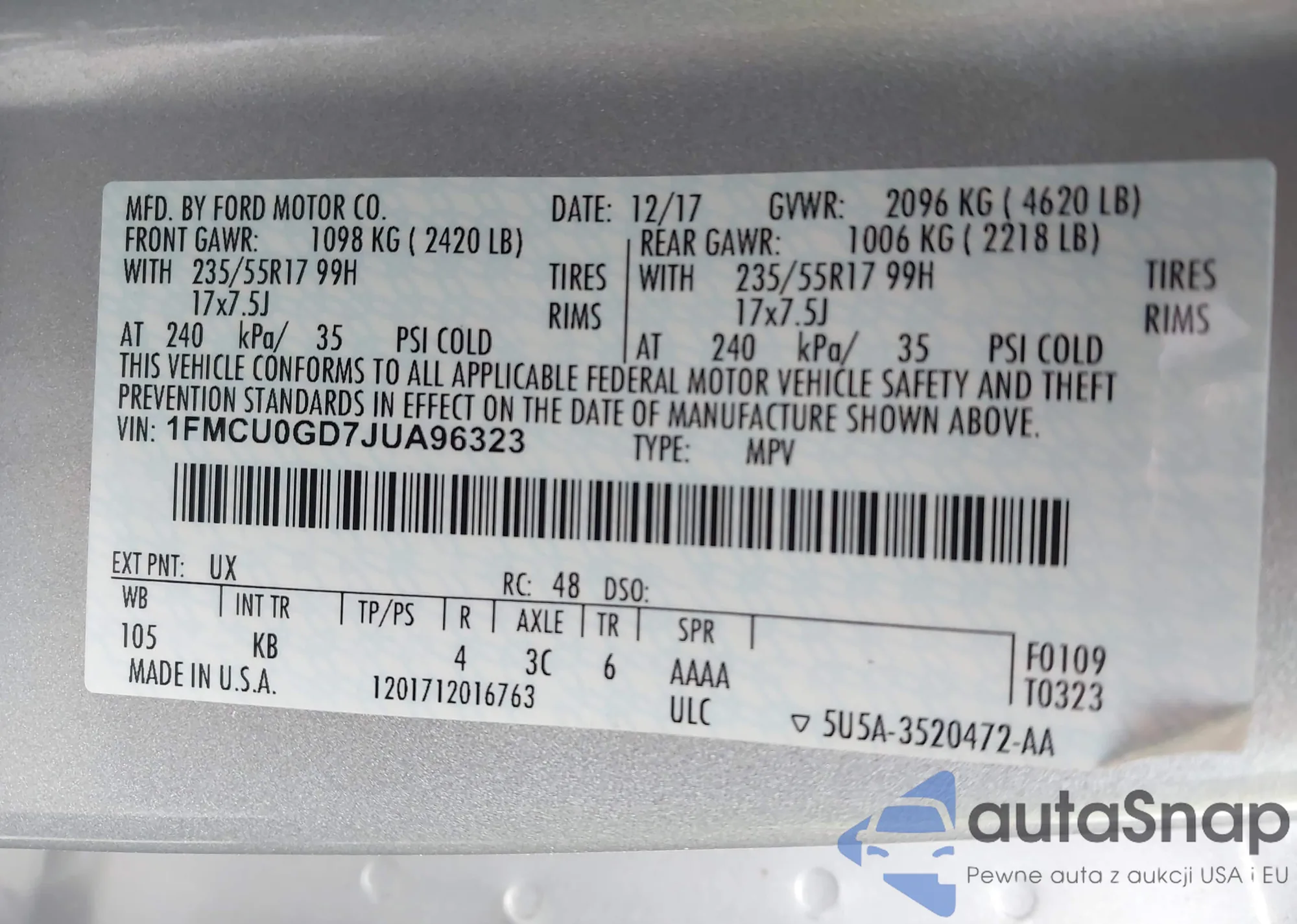 • VIN 1FMCU0GD7JUA96323