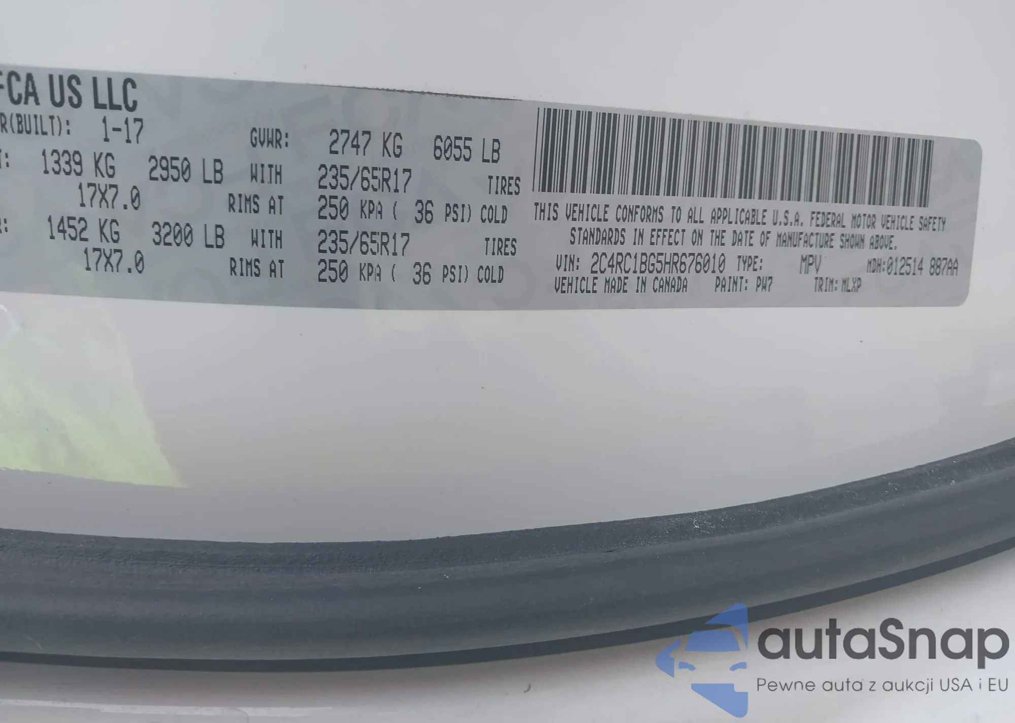 • VIN 2C4RC1BG5HR676010