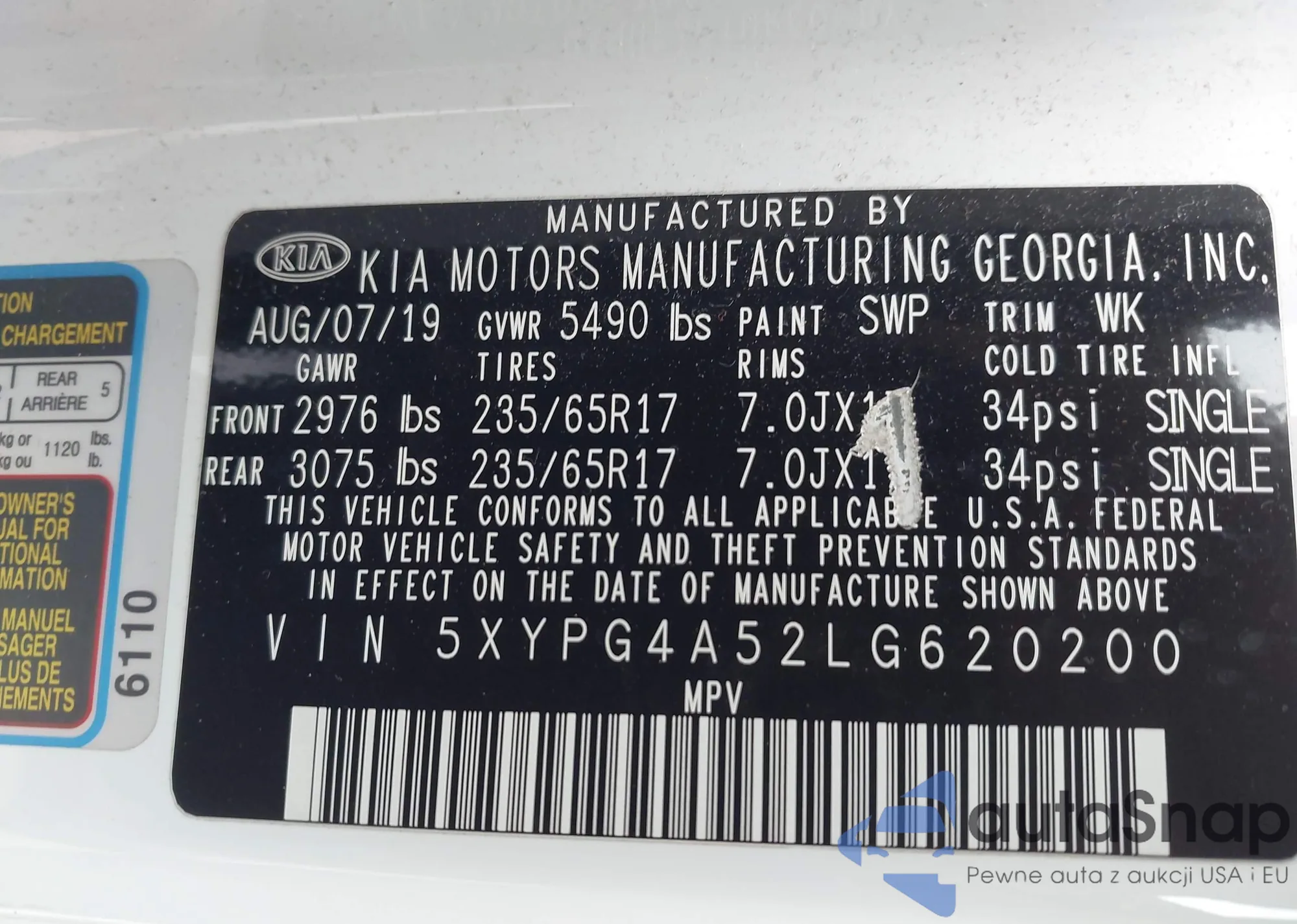 • VIN 5XYPG4A52LG620200