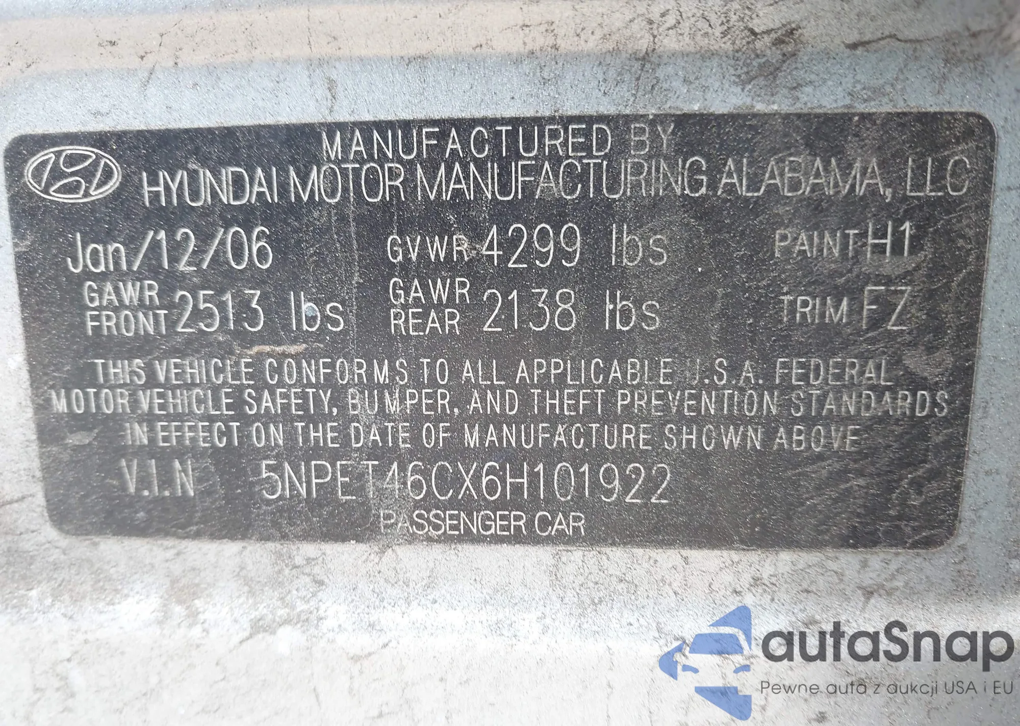 • VIN 5NPET46CX6H101922
