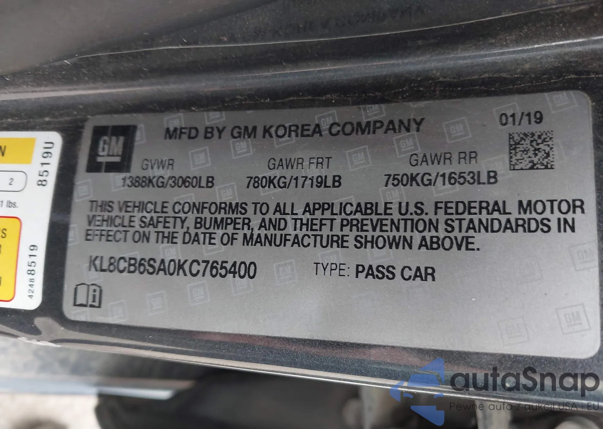 • VIN KL8CB6SA0KC765400